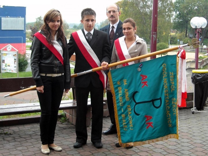 Na ręce dyrektora ZSO Marii Targosz przekazał go Fabian Czyż, prezes Bielsko-Bialskiego Oddziału ŚZŻAK.