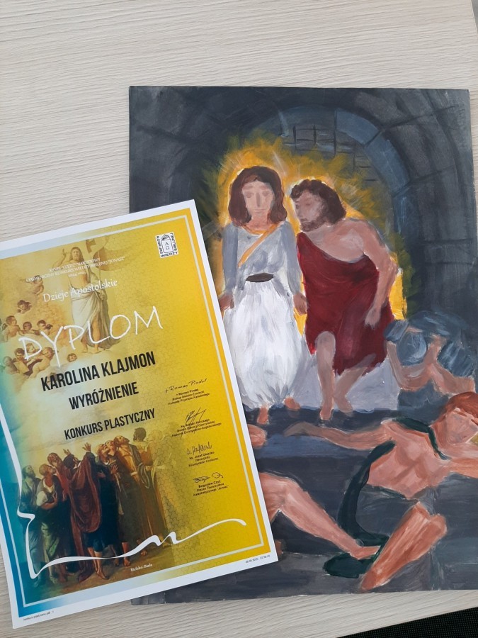 Uczeń klasy 6b Daniel Góra zdobył I miejsce w konkursie wiedzy z zakresu Dziejów Apostolskich i odebrał nagrodę: statuetkę Jonasza, natomiast tytuł finalisty uzyskał jego kolega z klasy Kacper Sołtysiak.
