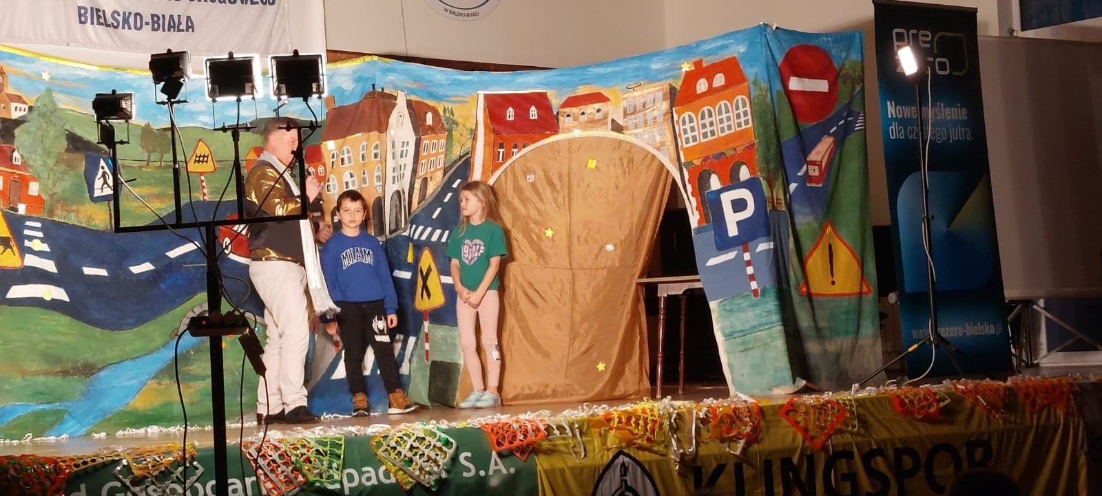 W środę klasy pierwsze uczestniczyły w wyjątkowej imprezie edukacyjnej pod hasłem „Bądź i Ty Bezpieczny”, organizowanej przez lokalne instytucje działające na rzecz bezpieczeństwa ruchu drogowego. W programie dzieci poznawały zasady bezpiecznego poruszania się po drodze: m.in. rozpoznawały znaki drogowe, uczyły się jak poprawnie korzystać z przejścia dla pieszych i trenowały, co robić jako pieszy — w formie zabawy, konkursów i piosenek.