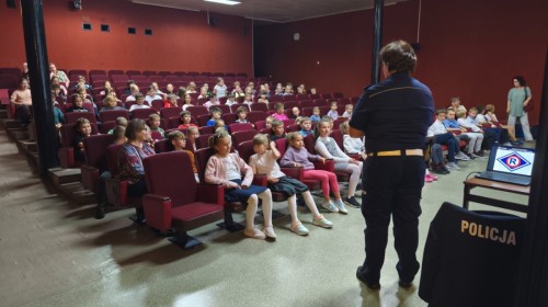 W dniu 11.09 uczniowie klas II i III wzięli udział w spotkaniu z funkcjonariuszką Policji poświęconym zasadom bezpiecznego poruszania się po drogach. Policjantka przypomniała dzieciom, jak prawidłowo przechodzić przez jezdnię – zawsze w wyznaczonych miejscach, na zielonym świetle i po dokładnym upewnieniu się, że samochody się zatrzymały.