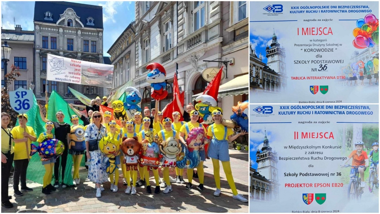 W dniu 8 czerwca reprezentacja naszej szkoły brała udział w XXIX Ogólnopolskich Dniach Bezpieczeństwa, Kultury Ruchu i Ratownictwa Drogowego, zorganizowanych przez Fundację na Rzecz Bezpieczeństwa Ruchu Drogowego, Urząd Miasta w Bielsku-Białej oraz Komendę Miejską Policji w Bielsku-Białej. Jak co roku odbył się międzyszkolny konkurs wiedzy o bezpieczeństwie, a spod bielskiego Ratusza w kierunku Placu Wojska Polskiego wyruszył barwny korowód bielskich szkół. Podczas wspólnej zabawy dzieci uczyły się zasad kodeksu drogowego i bezpiecznych nawyków. Nasza szkoła zajęła I miejsce w kategorii Prezentacja Drużyny Szkolnej w "KOROWODZIE" oraz II miejsce w Międzyszkolnym Konkursie z zakresu Bezpieczeństwa Drogowego.