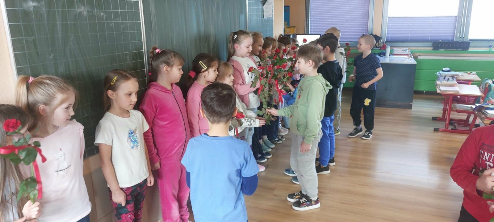 Chłopcy z klas 1–3 przygotowali dla swoich koleżanek miłe niespodzianki. Były serdeczne życzenia, drobne upominki oraz wiele uprzejmych gestów. W każdej klasie chłopcy zadbali o to, aby wszystkie dziewczynki poczuły się wyjątkowo i uśmiech pojawił się na ich twarzach. Pamiętano również o Paniach – nauczycielkach i wychowawczyniach, którym uczniowie złożyli piękne życzenia i podziękowania za codzienną opiekę, cierpliwość i serce wkładane w nauczanie.