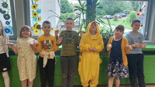 Z tej okazji Samorząd Uczniowski klas I-III zorganizował wyjątkową akcję — uczniowie przyszli do szkoły ubrani na żółto na wzór naszych pracowitych pszczółek lub w motywy zwierzęce, bo 22 maja obchodzimy Ogólnopolski Dzień Praw Zwierząt. Obchody tego dnia miały na celu przypomnienie i uświadomienie, iż zwierzęta podobnie jak ludzie mają swoje prawa i należy im się szacunek.