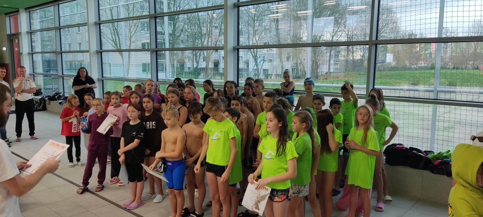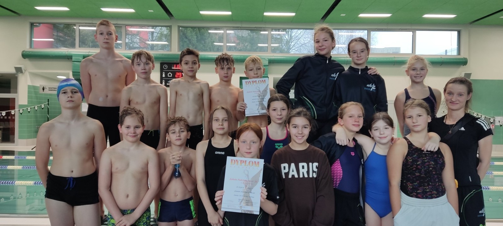 Naszą szkołę reprezentowali uczniowie z klas pływackich oraz uczniowie z klas II–VI — po dwoje z każdej klasy.