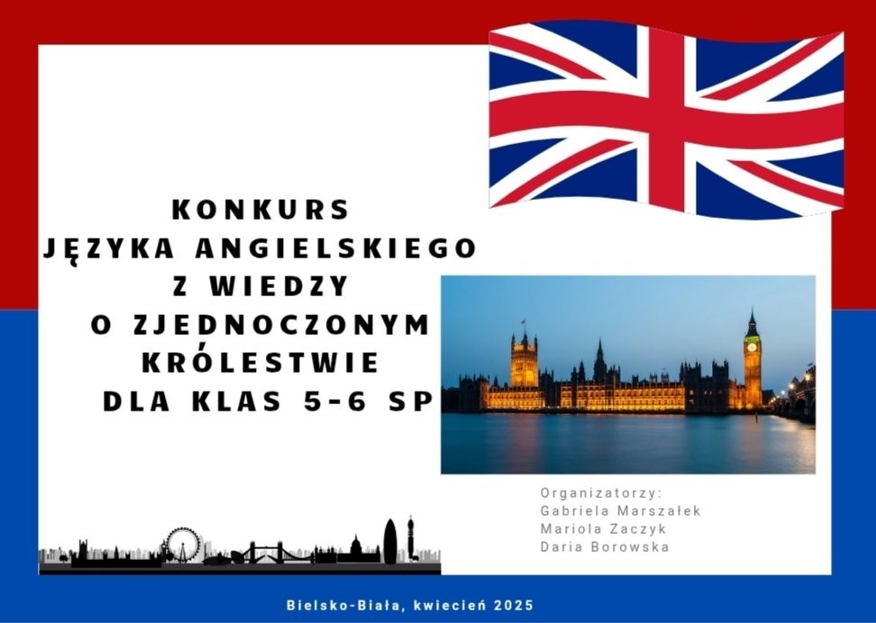 Z radością informujemy, że 2 kwietnia w naszej szkole odbył się Konkurs Wiedzy o Zjednoczonym Królestwie, w którym uczestniczyli uczniowie z klas 5 i 6 SP. Celem konkursu było pogłębienie wiedzy na temat historii, kultury, geografii oraz tradycji Wielkiej Brytanii.