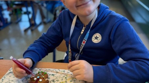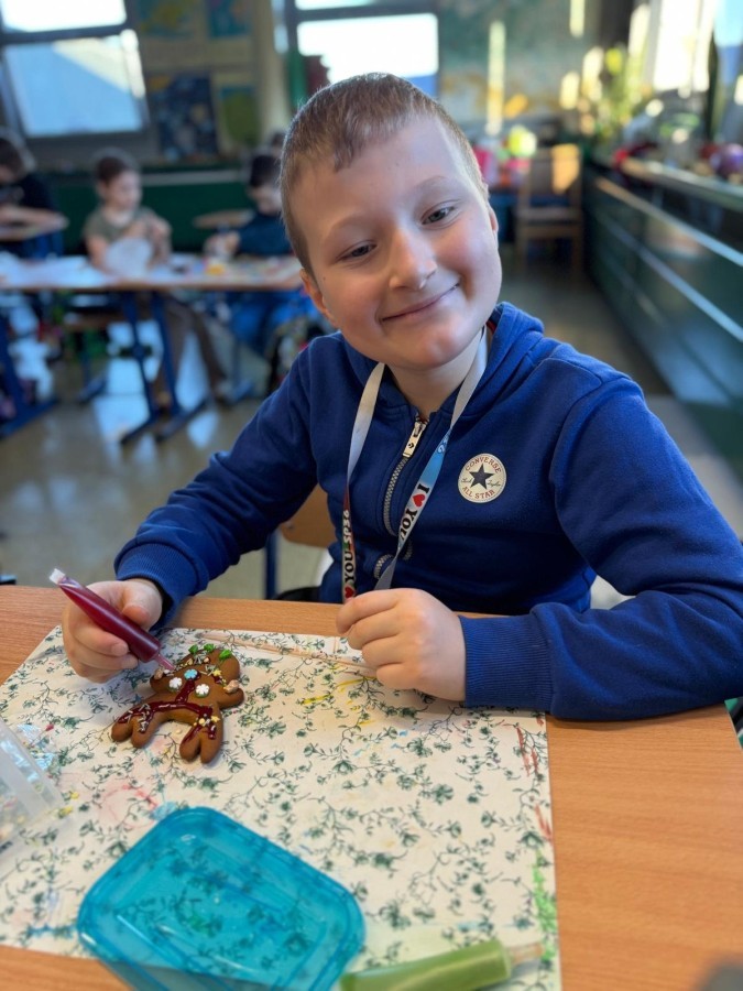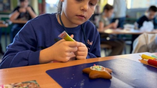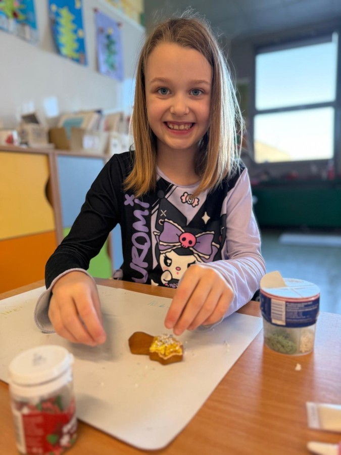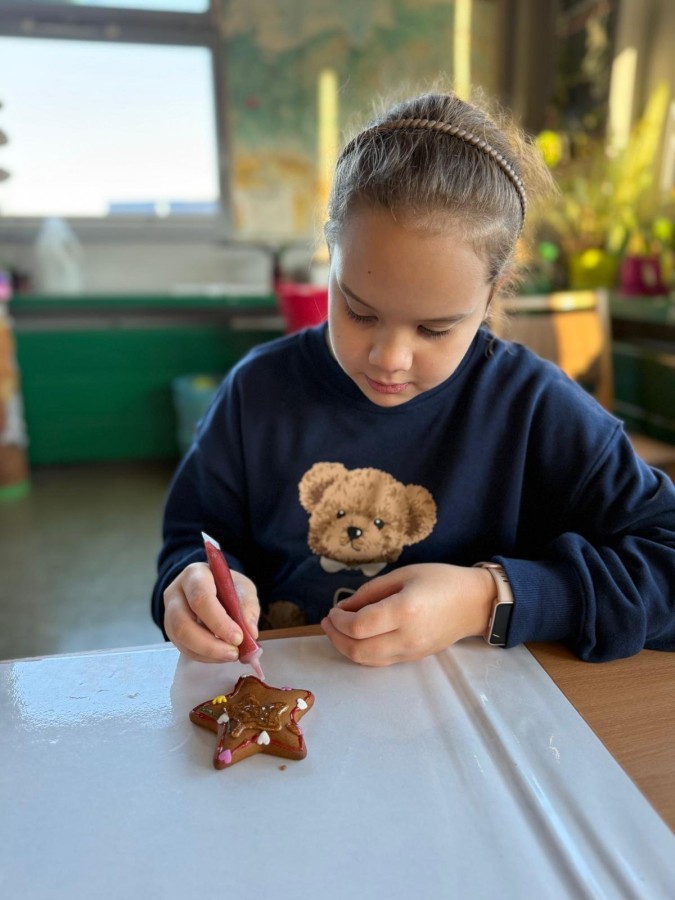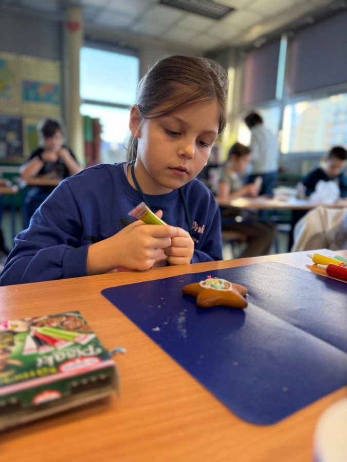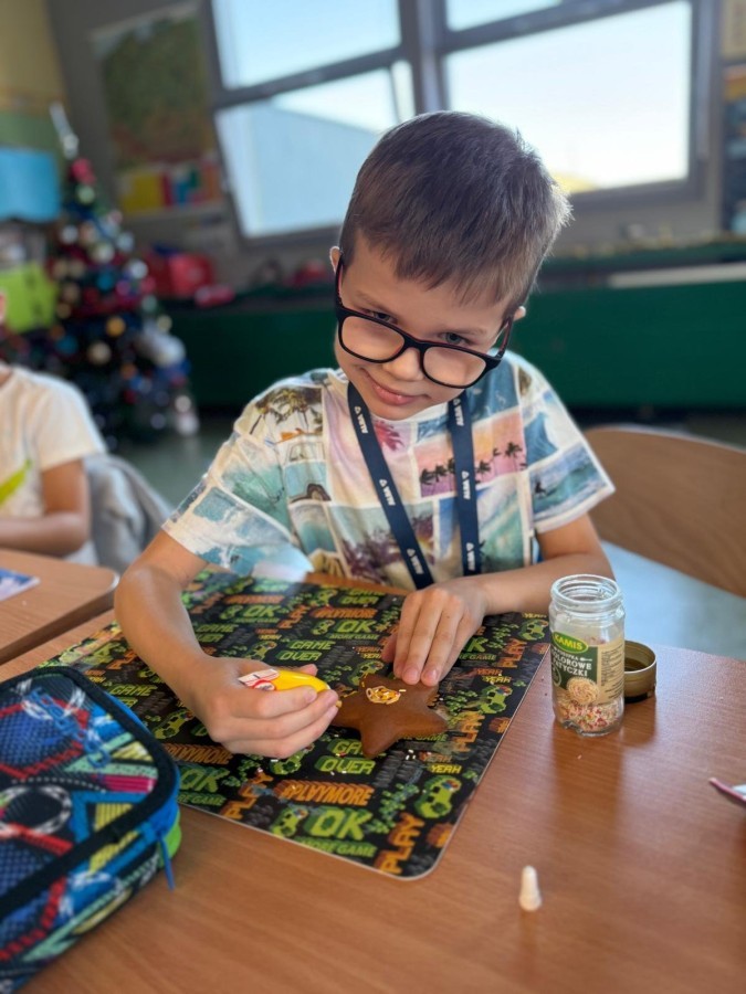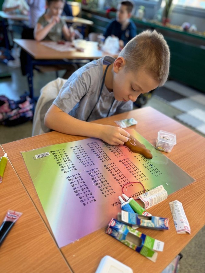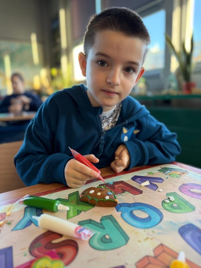 Uczniowie ozdabiali pierniki według własnego pomysłu. Było kolorowo, słodko i bardzo twórczo!. Powstały prawdziwe dzieła sztuki, a wspólna praca przyniosła dzieciom mnóstwo radości.