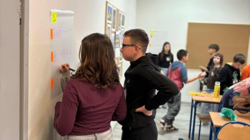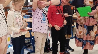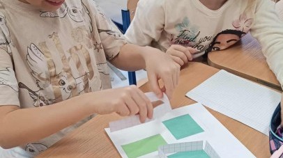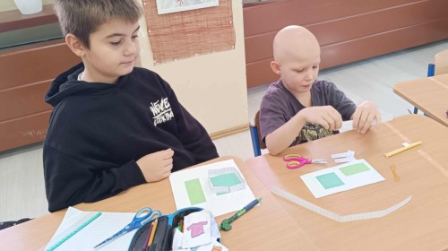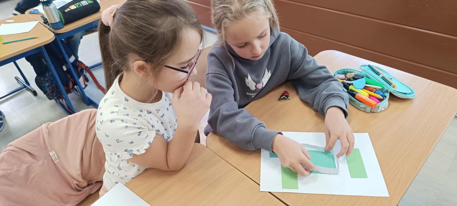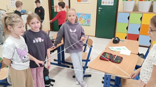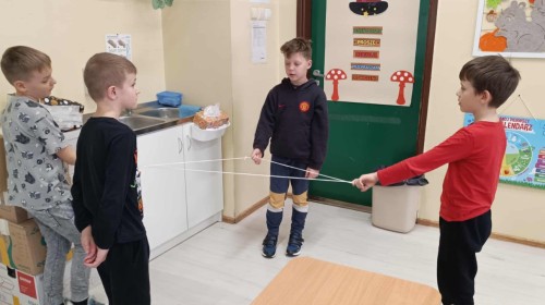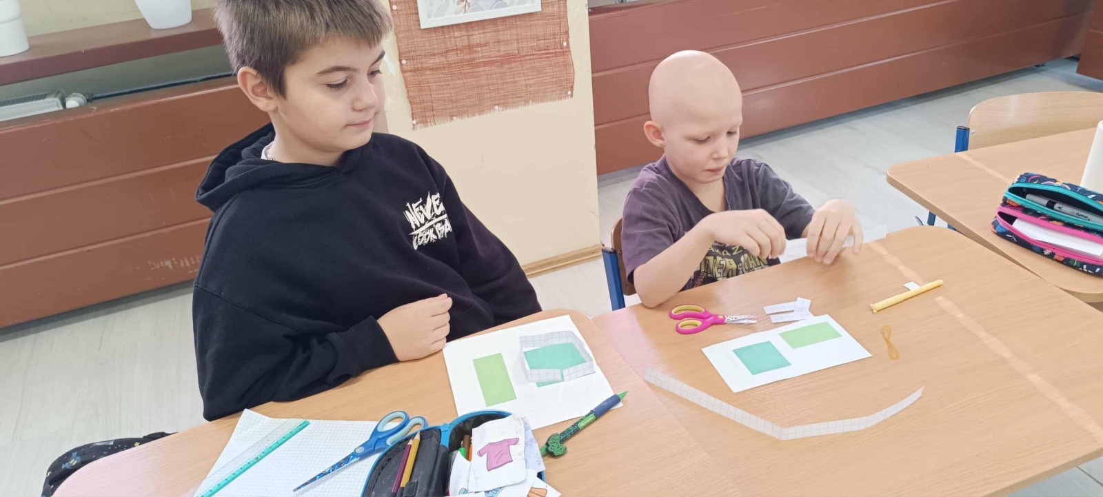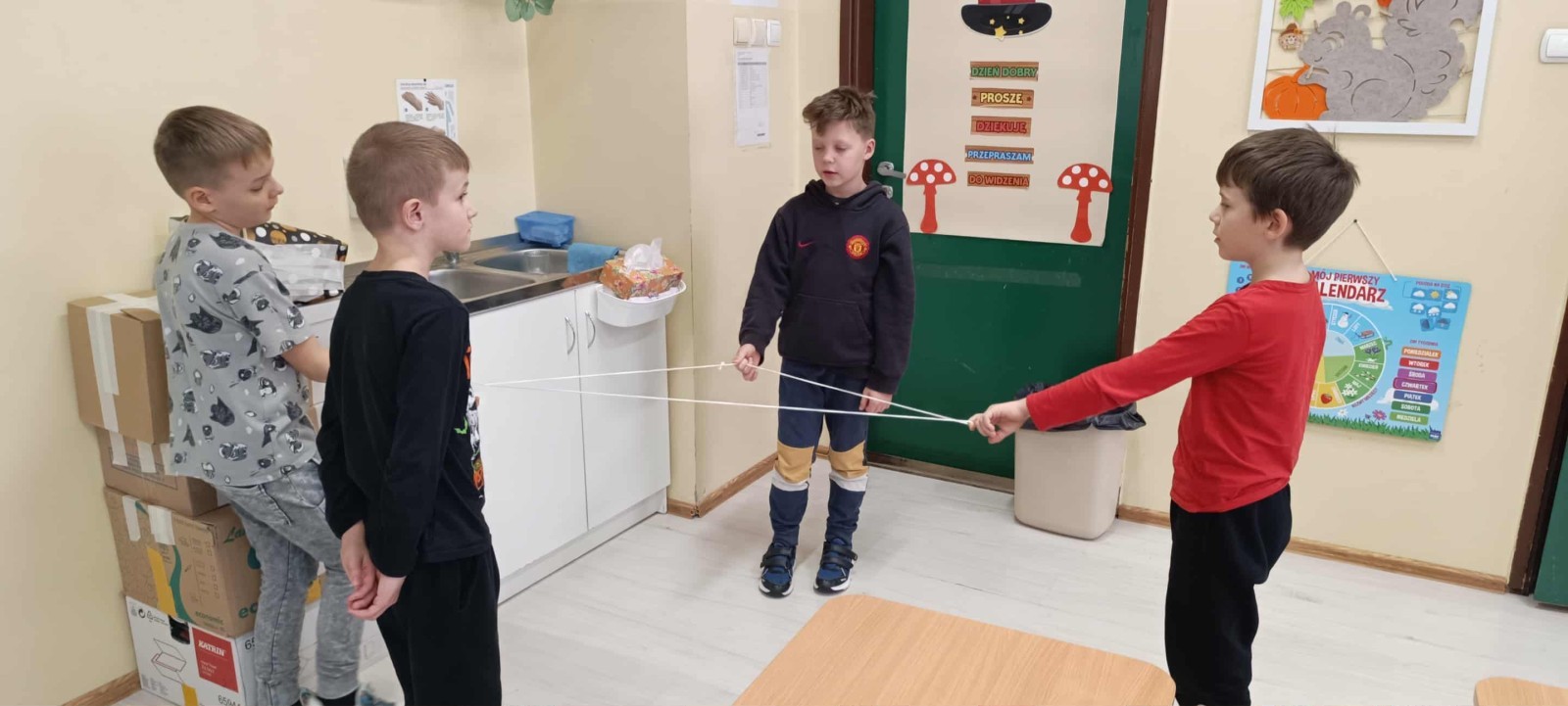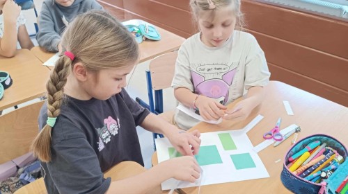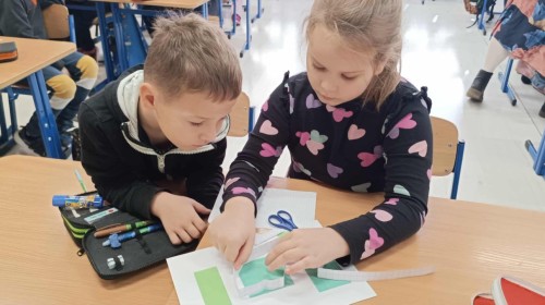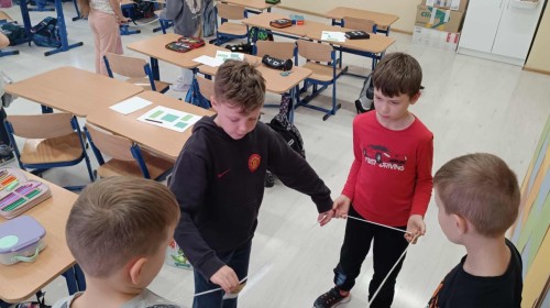 Podczas warsztatów uczniowie utrwalali nazwy podstawowych figur, wzbogacali swój język matematyczny, opisując ich cechy i kształty, a przede wszystkim – budowali pozytywny stosunek do matematyki dzięki różnorodnym grom i zabawom geometrycznym.