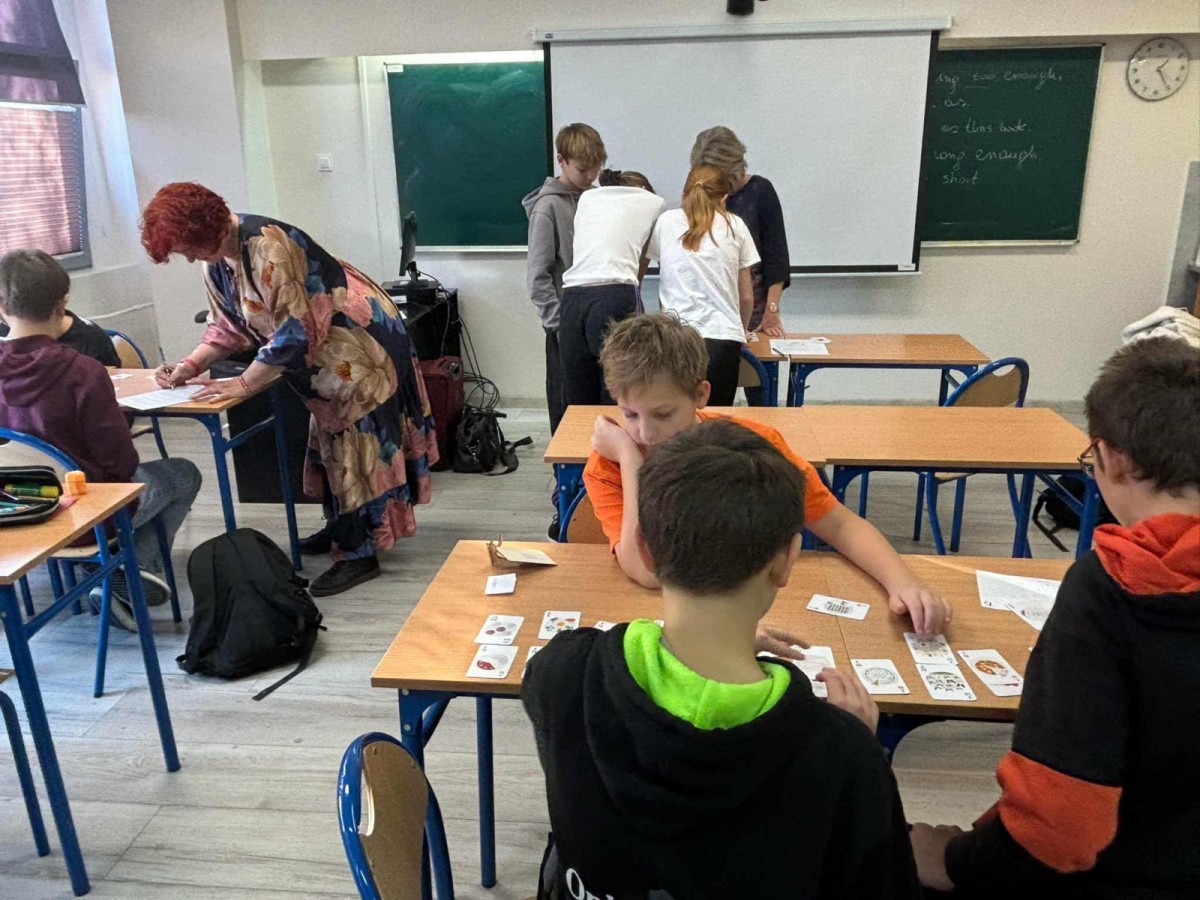 14 listopada 2025 roku już po raz drugi w Naszej Szkole na lekcjach matematyki gościliśmy Panią Jolantę Adamczyk- emerytowaną nauczycielkę nauczania wczesnoszkolnego, pasjonatkę matematyki, szkoleniowca z dużym doświadczeniem oraz v-ce przewodniczącą Oddziału Bielskiego Stowarzyszenie Nauczycieli Matematyki. Pani Jolanta autorka EDUiGRAszek przeprowadziła warsztaty matematyczne w klasach 6b i 2d.