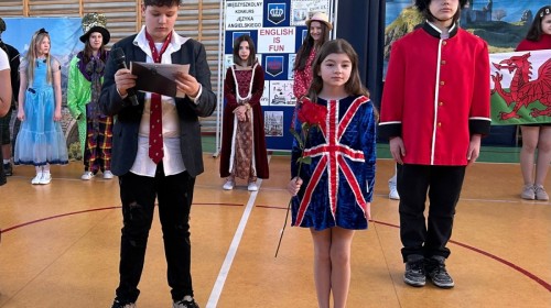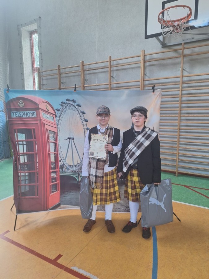 W dniu 9 maja br. uczniowie naszej szkoły zdobyli I miejsce w Międzyszkolnym Konkursie Języka Angielskiego "English is Fun" organizowanym przez SP 9 w Bielsku - Białej. Tegoroczna XX jubileuszowa edycja konkursu była poświęcona Zjednoczonemu Królestwu Wielkiej Brytanii i Irlandii Północnej. Nasza drużyna w składzie: Milena Waligóra 6a, Judyta Miranowicz 6a, Kacper Czernek 6c oraz Mikołaj Jeleń 6c wykazali się nie tylko szczegółową wiedzą, znajomością języka obcego ale również umiejętnościami sportowymi i zręcznościowymi, gdyż jedną z konkurencji był specjalny tor przeszkód.