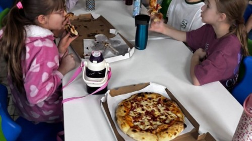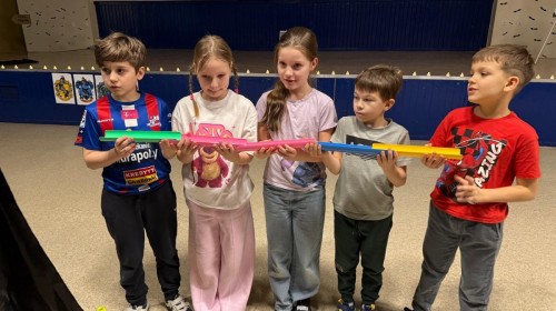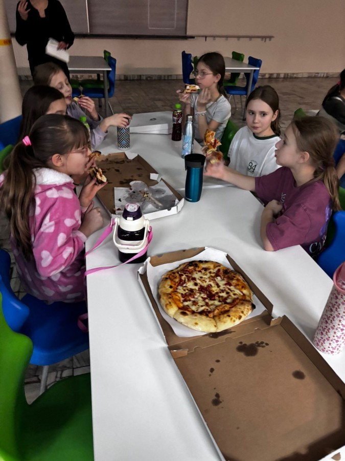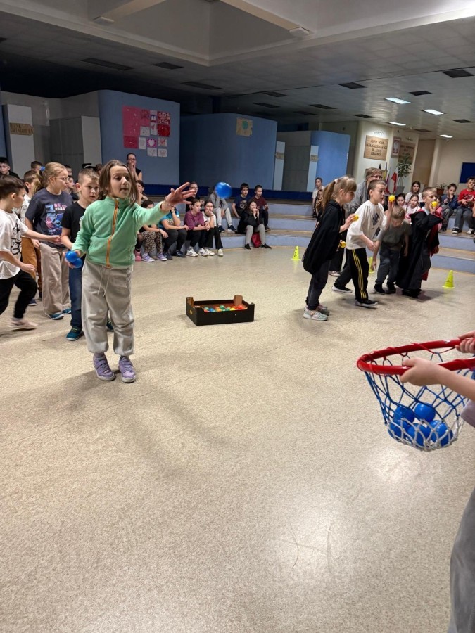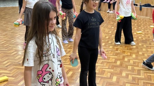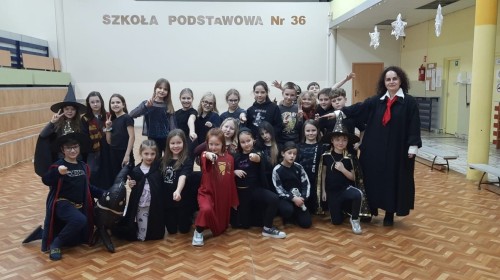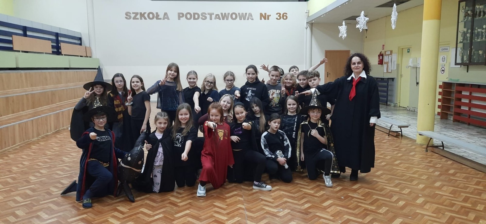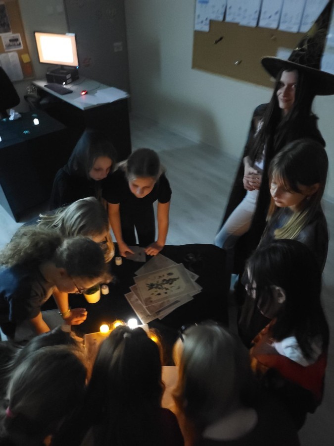 Na uczestników czekało wiele atrakcji, m.in. sportowy Turniej Trójmagiczny oraz pełen zagadek magiczny escape room. Dużym zainteresowaniem cieszyła się także fotobudka, w której dzieci mogły wykonać pamiątkowe zdjęcia. Jednym z najbardziej emocjonujących punktów programu były podchody „Zaginione Zaklęcia Hogwartu”. Uczniowie, wyposażeni w latarki, przemierzali zaciemnione szkolne korytarze, rozwiązując kolejne zadania i odkrywając tajemnice ukryte w różnych zakątkach budynku. Nie zabrakło również piżama party oraz wspólnych zabaw z animatorem, które dostarczyły mnóstwo radości i pozwoliły spożytkować niespożytą energię.