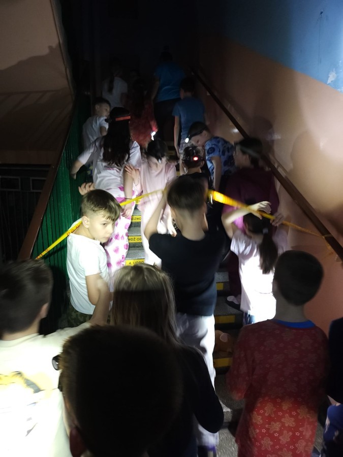 Dzieci przybyły przygotowane do nocowania, zabierając ze sobą śpiwory, materace i karimaty. Tego typu inicjatywy nie tylko dostarczają świetnej zabawy, ale przede wszystkim sprzyjają integracji społeczności szkolnej, budowaniu relacji oraz tworzeniu pozytywnych wspomnień. „Noc w Komnacie Tajemnic” była wyjątkowym doświadczeniem zarówno dla uczniów, jak i nauczycieli, pokazując, że szkoła może być miejscem pełnym radości, przygód i magii.