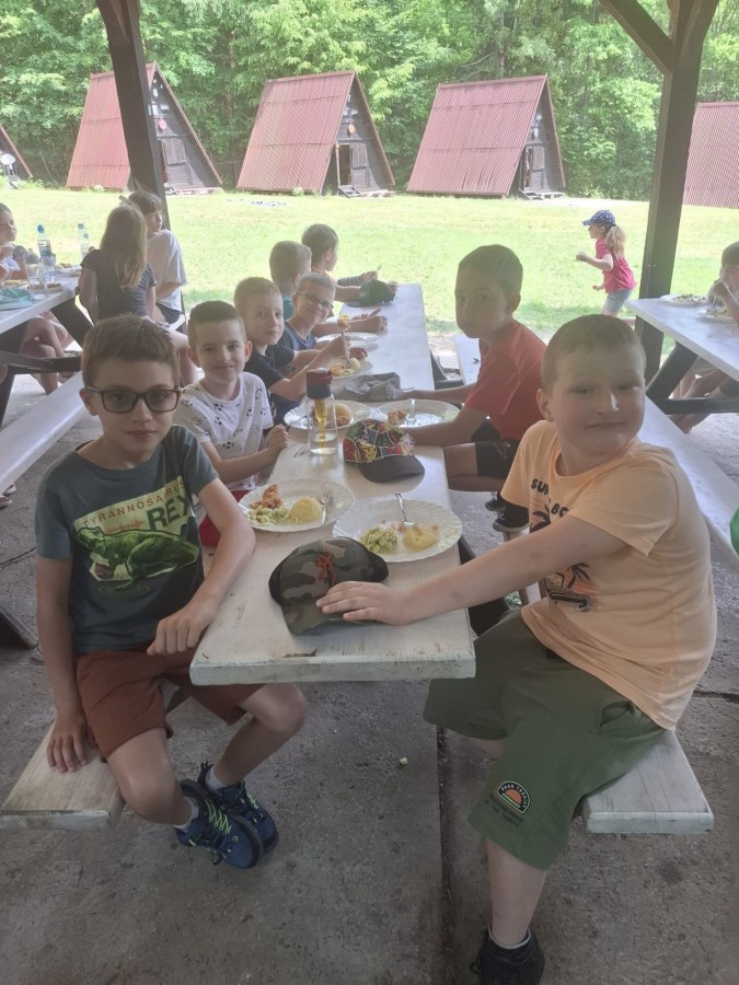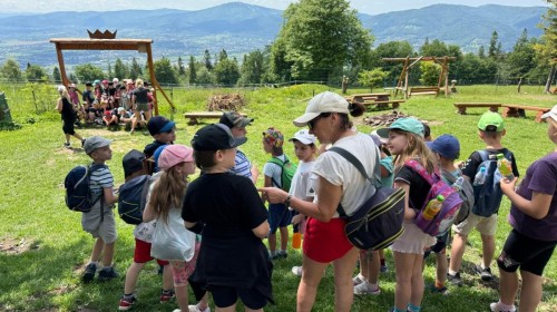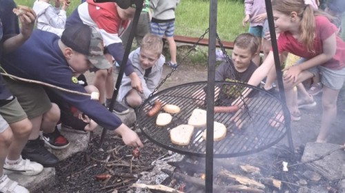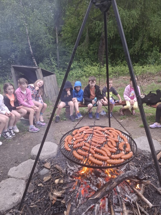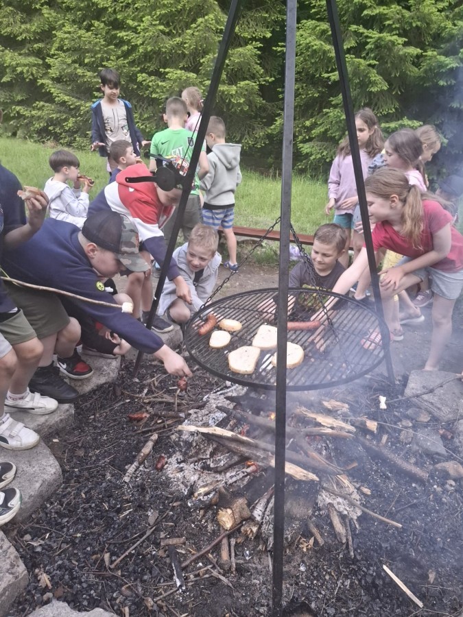 W dniach 5-6 czerwca, klasa 1a i 1b uczestniczyła w niezwykłej, survivalowej nocowance w Ośrodku Harcerskim "Wilczysko". Dzieci przeżyły niezapomnianą przygodę, pełną emocji, wyzwań i kontaktu z naturą. Jednym z głównych punktów programu było wyjście na Magurkę. Zdobycie szczytu przyniosło wszystkim wiele satysfakcji. Wieczorne ognisko zintegrowało grupę przy wspólnym śpiewie i akompaniamencie gitary. Podczas noclegu w drewnianych domkach uczestnicy musieli zmierzyć się z nagłą burzą, co dodało całemu wydarzeniu dodatkowego dreszczyku emocji. Dzięki współpracy i zachowaniu zasad bezpieczeństwa, wszyscy przeszli przez to doświadczenie bezpiecznie i z nową dawką wiedzy o przetrwaniu.