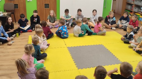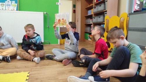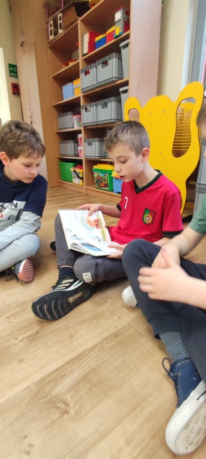 Uczniowie klasy III wcielali się w role przewodników czytelniczych – czytali młodszym kolegom, jak również podejmowali samodzielne czytanie w klasie podczas zajęć lekcyjnych.