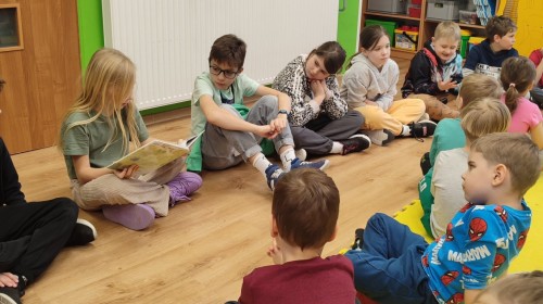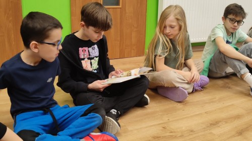 Na koniec przygody z literaturą. Uczniowie poznali historię sympatycznego bohatera – Tatrzańskiego Świstaka, stworzonego przez Barbarę Gawryluk. Lektura opowiadań stała się punktem wyjścia do wspólnych rozmów o przyjaźni, odwadze, pomaganiu innym i pięknie polskiej przyrody.