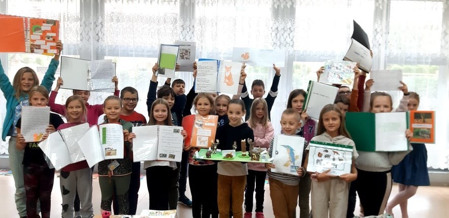 Uczniowie klasy 3c stworzyli w ramach edukacji przyrodniczej projekty dotyczące leśnych zwierząt, Dzieci dowiedziały się jakie są cechy charakterystyczne danego gatunku zwierząt oraz poznały różnorodne ciekawostki na ich temat.