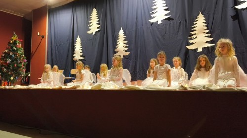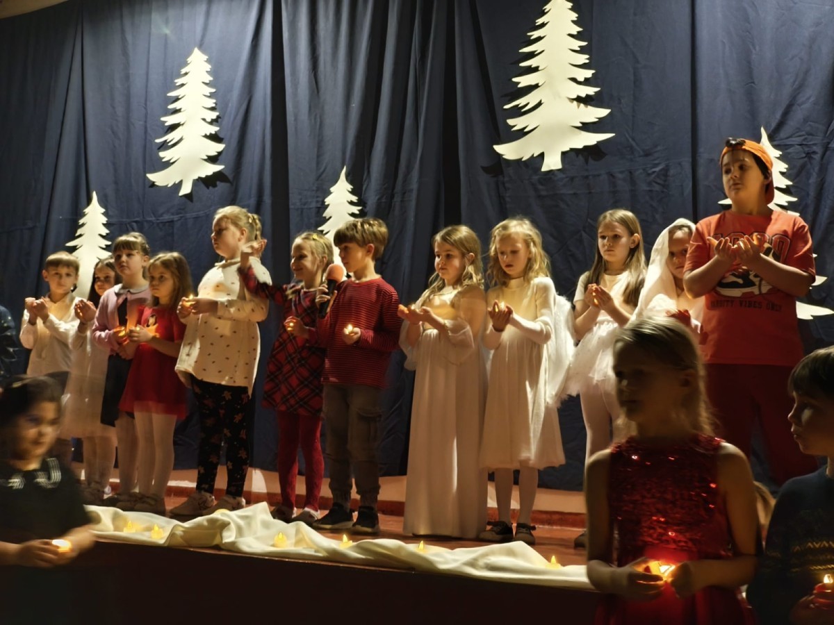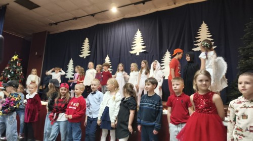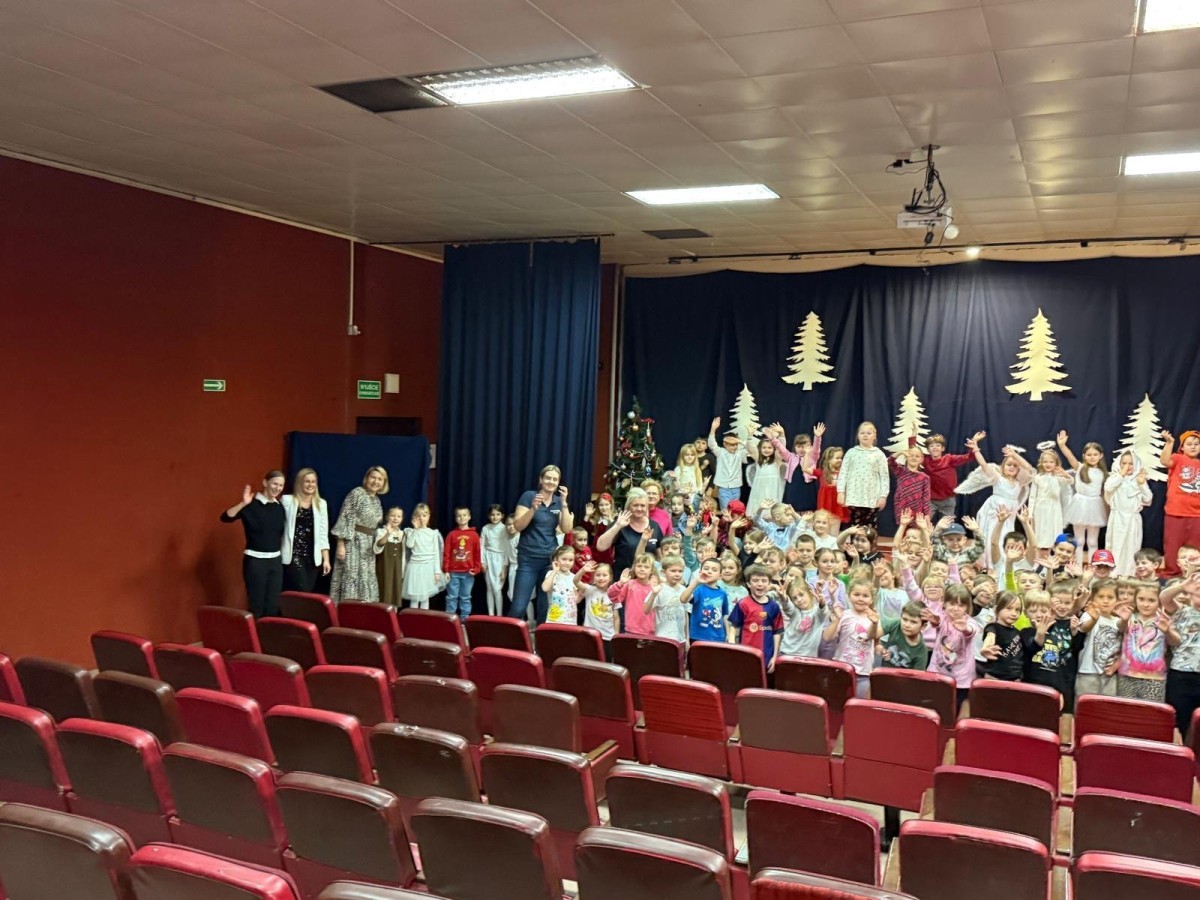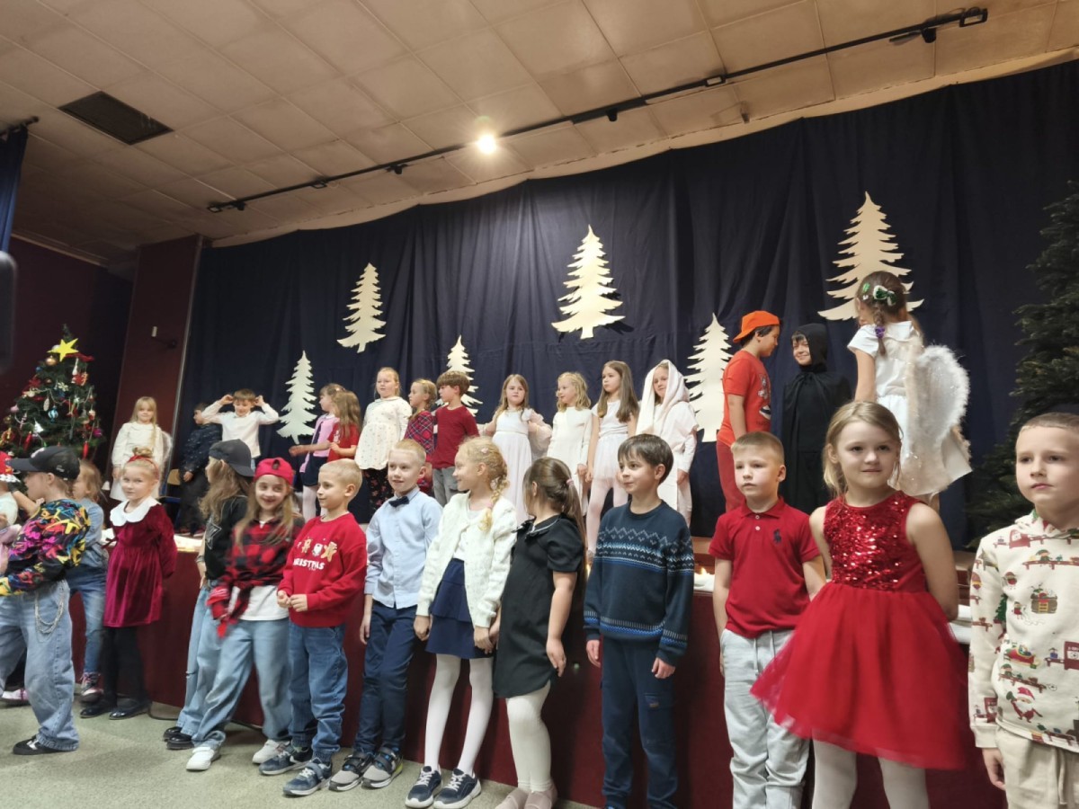 Uczniowie klasy 1a oraz 1c przygotowali wyjątkowe przedstawienie pt. „Cud wigilijnego serca”, które stało się okazją do wspólnego przeżywania radości, muzyki i tańca. Rano występ obejrzały dzieci z Przedszkola nr 55 – trzy oddziały zaproszone w ramach promocji Szkoły Podstawowej nr 36. Dla najmłodszych gości było to pełne kolorów i emocji spotkanie z teatrem, które na długo pozostanie w ich pamięci.