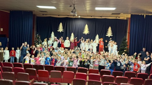 Po południu na widowni zasiedli zaproszeni dziadkowie oraz rodzice. Publiczność z ogromnym wzruszeniem i entuzjazmem oglądała występ, w którym nie zabrakło piosenek, układów tanecznych oraz serdecznej, ciepłej atmosfery. Dodatkowo przedstawienie zostało połączone z udziałem szkoły w akcji „Pola Nadziei”, podkreślając znaczenie empatii, wrażliwości i niesienia pomocy innym.