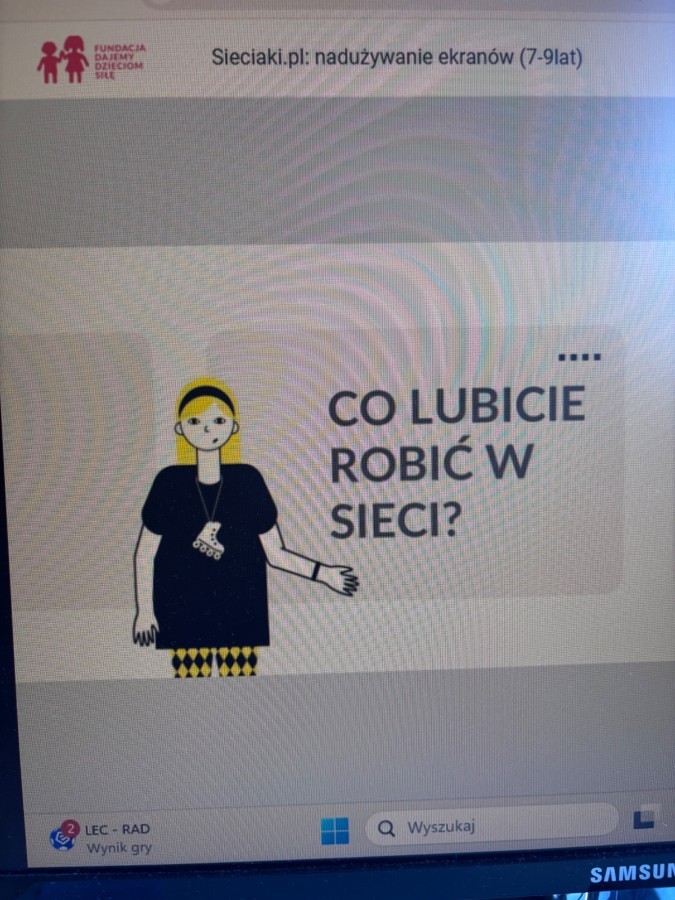 W trakcie zajęć omówiono również, jak ważne jest zachowanie równowagi między czasem spędzanym online a aktywnościami offline. Uczniowie wspólnie zastanawiali się, jakie mogą być zdrowsze i ciekawsze alternatywy dla korzystania z ekranów. Wymieniali m.in. spacery, jazdę na rowerze, zabawy na świeżym powietrzu, czytanie książek, rysowanie oraz spotkania z przyjaciółmi i rodziną.