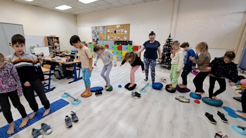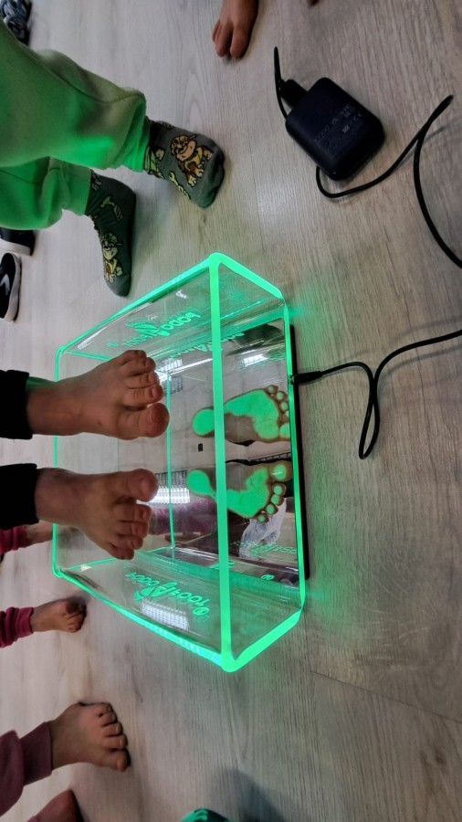 Dzieci z ogromnym zainteresowaniem przechodziły specjalną ścieżkę sensoryczną, ćwiczyły utrzymywanie równowagi na desce, pokonywały tor przeszkód, a także mogły przyjrzeć się temu, jak pracują ich stopy i jak ważne jest ich prawidłowe ustawienie. Nie zabrakło również rozmów o koncentracji, napięciu mięśniowym oraz o tym, jak ćwiczyć mądrze i bezpiecznie, by czerpać z ruchu jak najwięcej radości i uniknąć urazów.