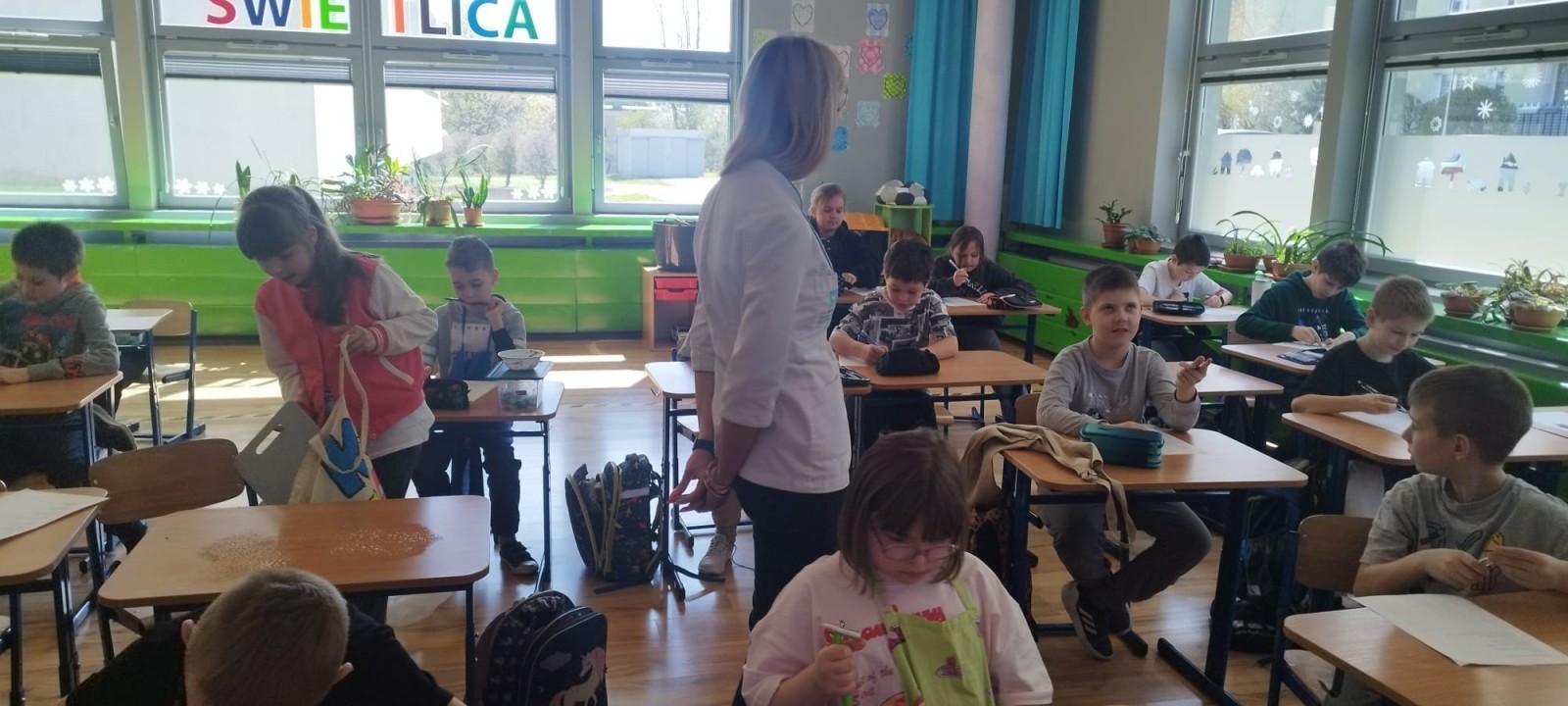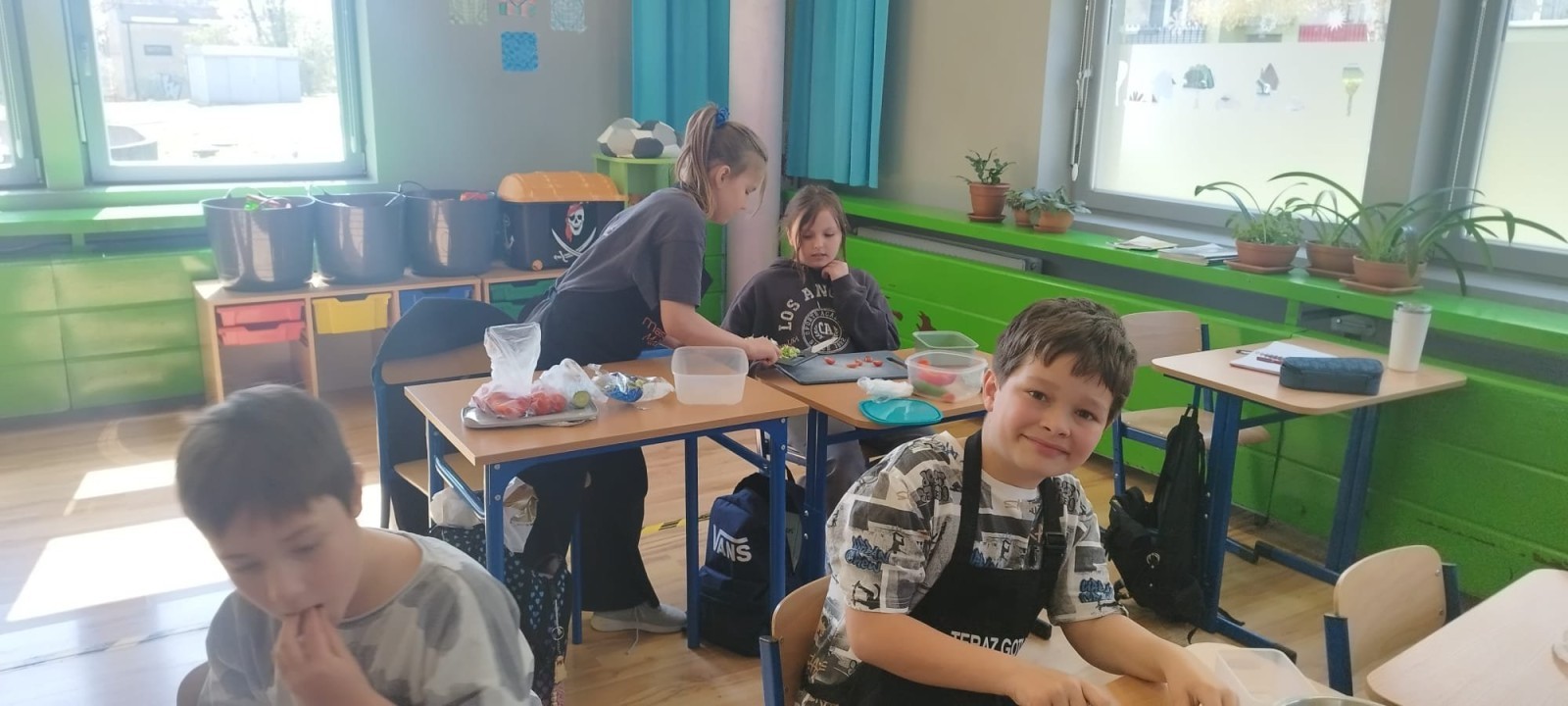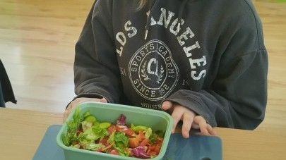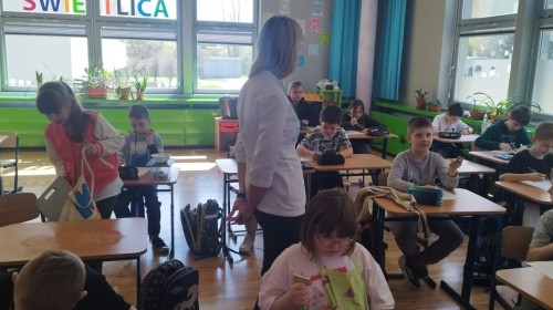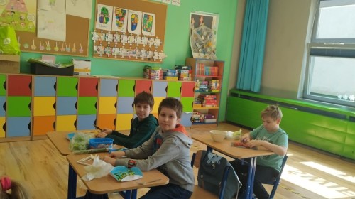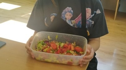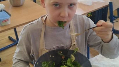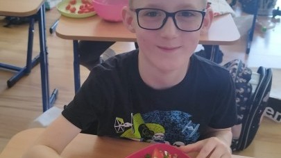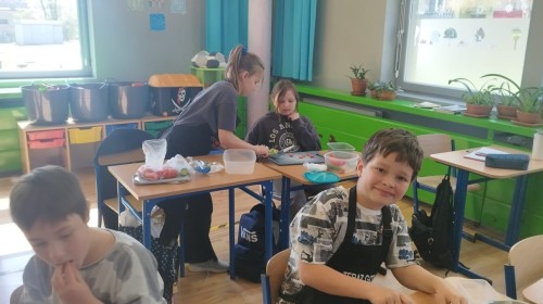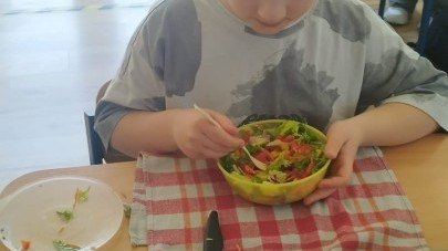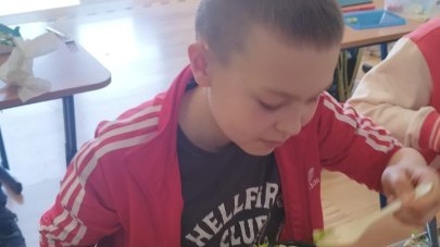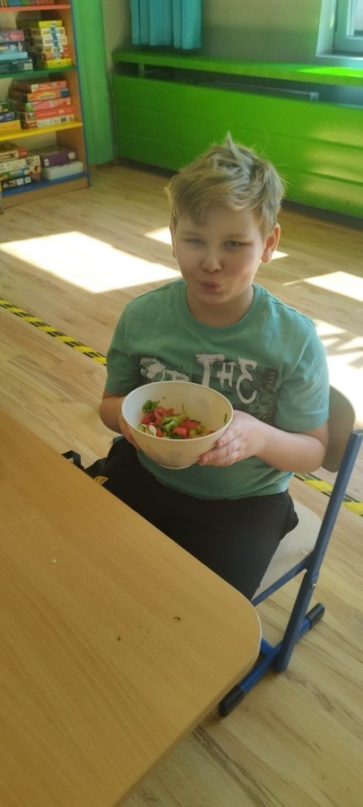 W dniu 10 kwietnia uczniowie klasy 3c spotkali się z Panią Anną Kubowicz pracującą jako dietetyk kliniczny. Podczas spotkania uczniowie poznali podstawowe zasady zdrowego żywienia oraz dowiedzieli się, jak ważną rolę odgrywa odpowiednio zbilansowana dieta w codziennym życiu. Specjalistka przedstawiła najważniejsze składniki pokarmowe niezbędne do prawidłowego funkcjonowania organizmu, takie jak białka, tłuszcze, węglowodany, witaminy i składniki mineralne, a także omówiła ich źródła i znaczenie dla zdrowia. W trakcie zajęć uczestnicy mieli okazję porozmawiać o swoich nawykach żywieniowych oraz dowiedzieć się, jak wprowadzać zdrowe wybory do codziennej diety. Część praktyczna objęła przygotowanie sałatki wiosennej z wykorzystaniem świeżych warzyw, oliwy z oliwek i nasion słonecznika co pozwoliło utrwalić wiedzę w praktyce. Dodatkowo przypomniane zostały zasady bezpiecznego posługiwania się nożem oraz higieny podczas przygotowywania posiłków. Spotkanie miało na celu kształtowanie zdrowych nawyków oraz rozwijanie umiejętności kulinarnych.