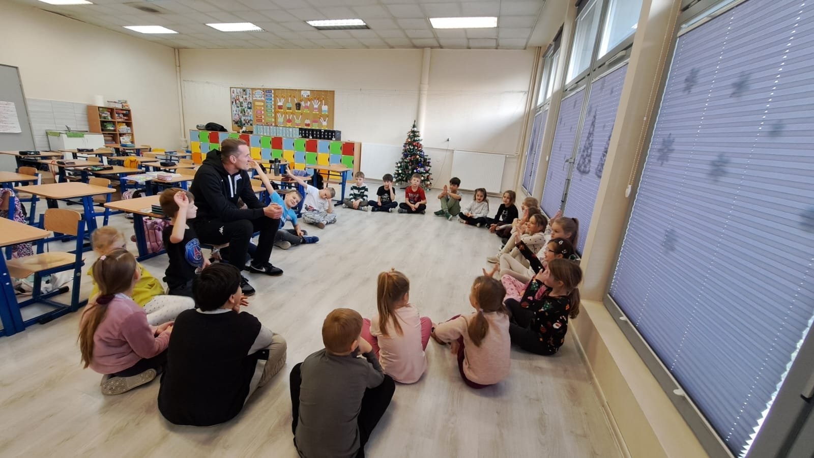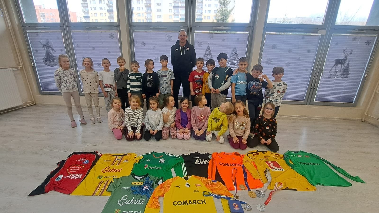 Uczniowie klasy 1c mieli okazję przeżyć wyjątkowe spotkanie. Naszą szkołę odwiedził Michal Peškovič – prywatnie tata jednego z uczniów, a zawodowo uznany piłkarz, który przez lata występował w polskiej Ekstraklasie. Jego wizyta była dla dzieci dużym wyróżnieniem i niezwykłym wydarzeniem.