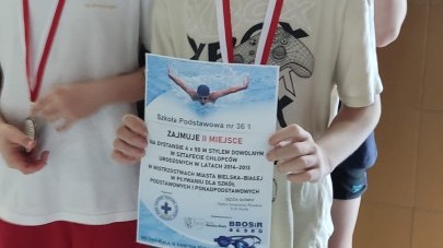 Dnia 16.04.2026 odbyły się zawody pływackie Mistrzostwa Miasta Bielsko-Biala na pływalni Troclik. Nasza reprezentacja złożona z uczniów klas pływackich oraz uczniów z pozostałych klas spisała się na medal zajmując🏆 I miejsce w klasyfikacji szkół podstawowych.