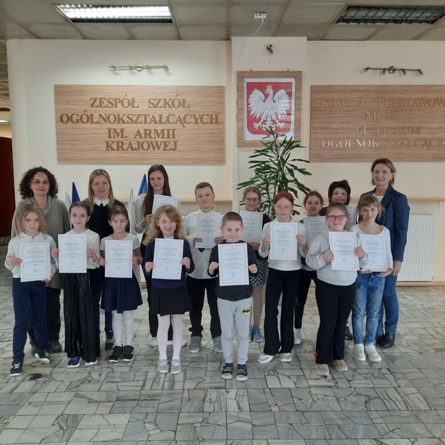 W dowód uznania za zaangażowanie nauczycieli w rozwijanie talentów i zainteresowań dzieci oraz wysokich osiągnieć uczniów w konkursach przedmiotowych, Szkoła Podstawowa nr 36 z Oddziałami Integracyjnymi w Bielsku-Białej otrzymała po raz kolejny Certyfikat „Łowców Talentów”.