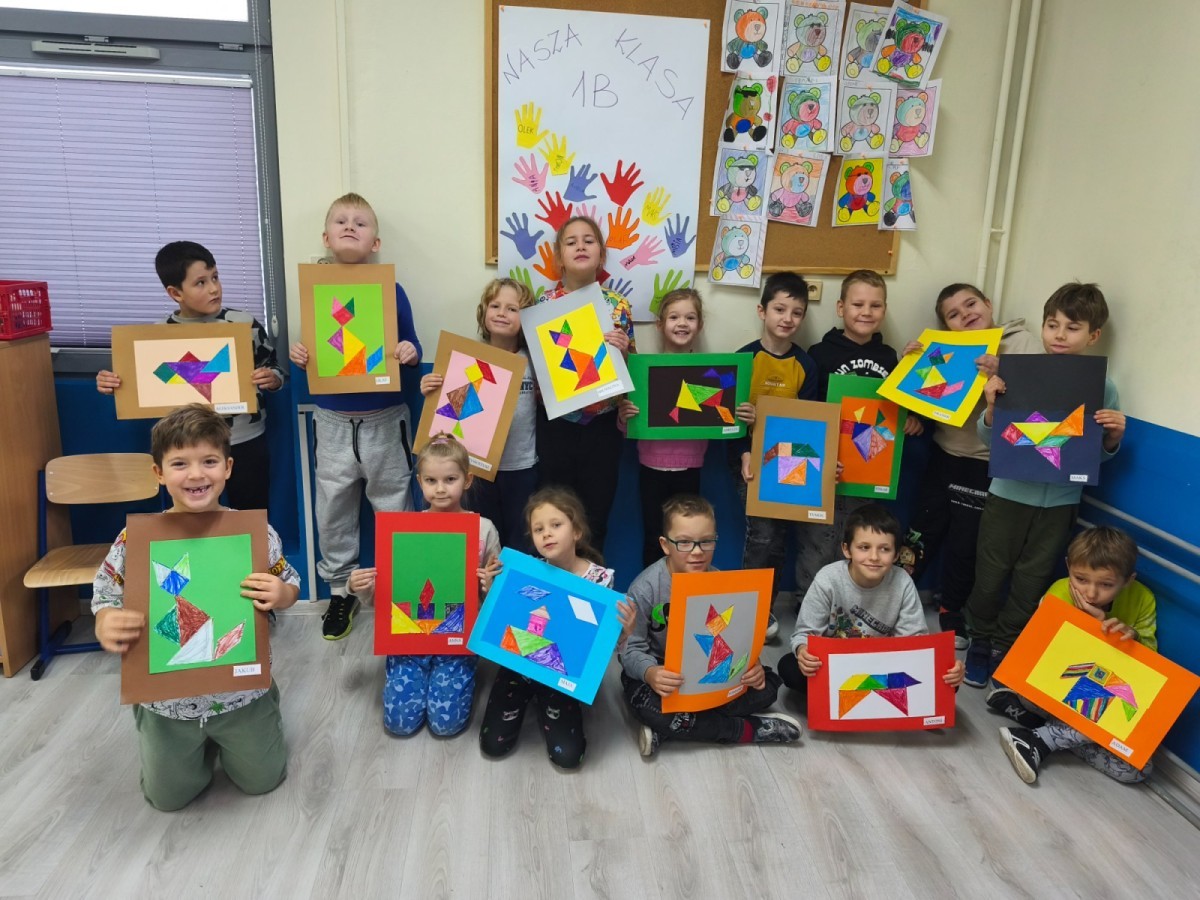 Uczniowie klasy 1b z zaangażowaniem wzięli udział w projekcie edukacyjnym „Antek i Natka w świecie wielkiej matematyki”. W ramach modułu „Matematyka w sztuce” pierwszoklasiści wykonywali zadania rozwijające kreatywne myślenie oraz wyobraźnię geometryczną.