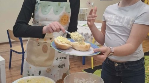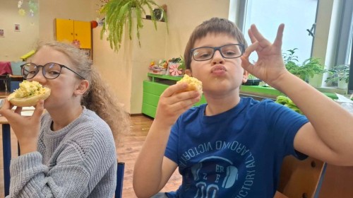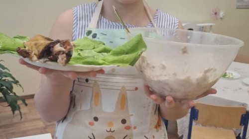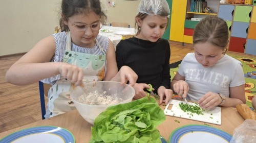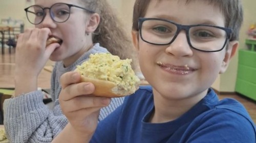 Podczas zajęć kulinarnych królowały jajka i świeży szczypiorek z naszego zielonego ogródka. Z przygotowanych przez dzieci past powstały pyszne i kolorowe kanapki.