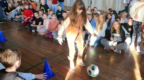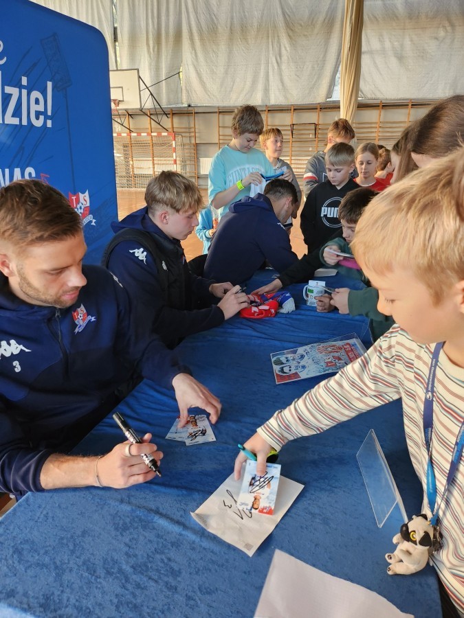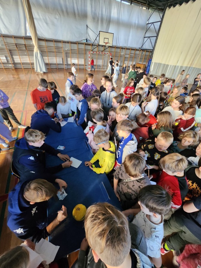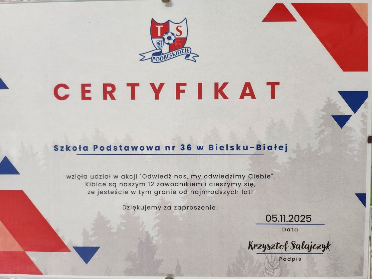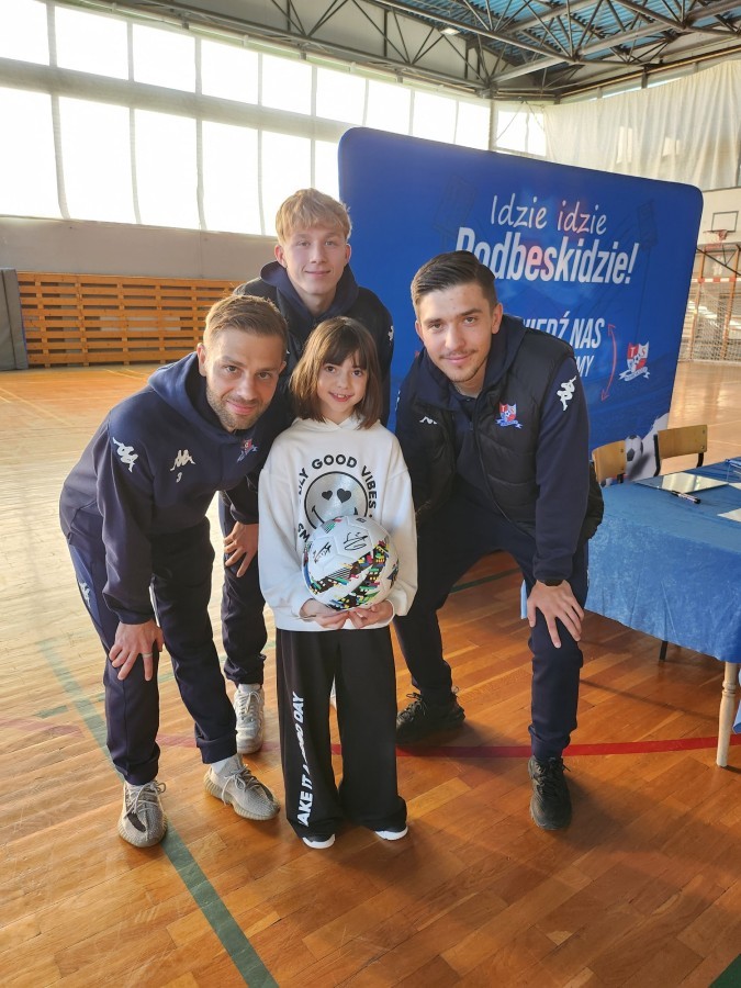 5 listopada 2025 r. naszą szkołę odwiedzili piłkarze TS Podbeskidzie Bielsko-Biała w ramach akcji „Odwiedź Nas, My odwiedzimy Ciebie”. Uczniowie z ogromnym entuzjazmem przyjęli zawodników, chętnie zadawali pytania i z dużym zainteresowaniem słuchali odpowiedzi. Nie zabrakło również autografów, wspólnych zdjęć oraz konkursów z nagrodami.