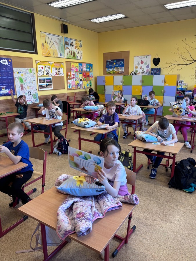 W dniu 16 kwietnia 2025 r. klasę sportową 2A odwiedzili prezes klubu sportowego Janosik, pan Tomasz Chmielniak, oraz trener pan Marek Wróbel. W obecności pani dyrektor szkoły Doroty Siwik panowie pogratulowali uczniom sprawności fizycznej oraz zaangażowania w rozwój sportowy. Złożyli również serdeczne życzenia radosnych i spokojnych Świąt Wielkanocnych.