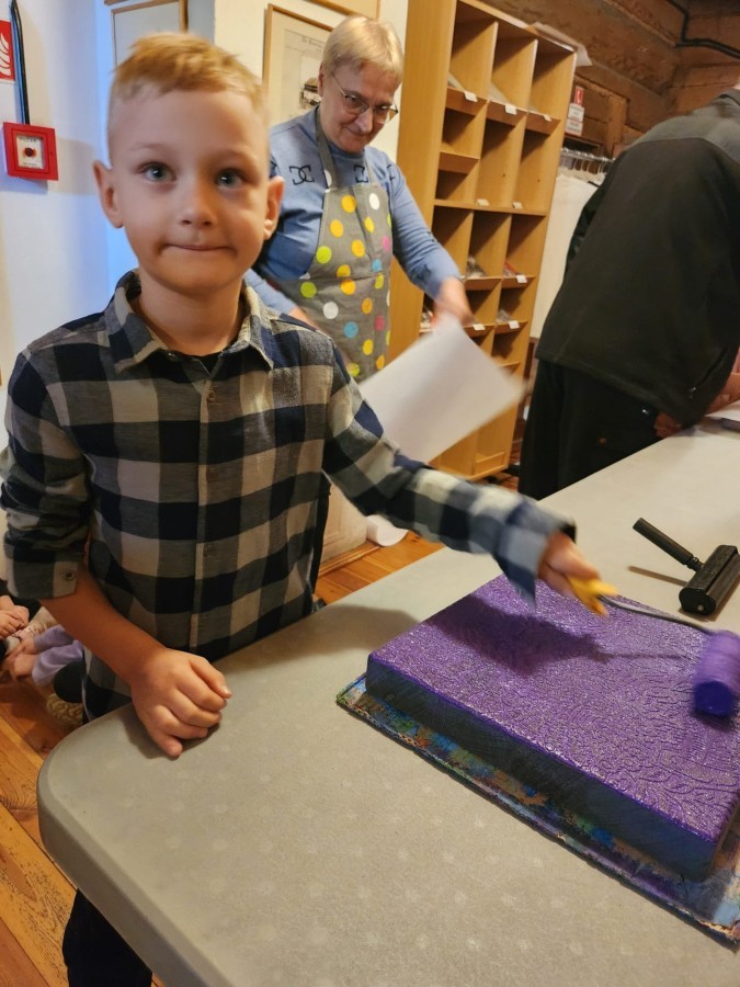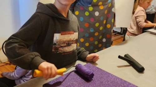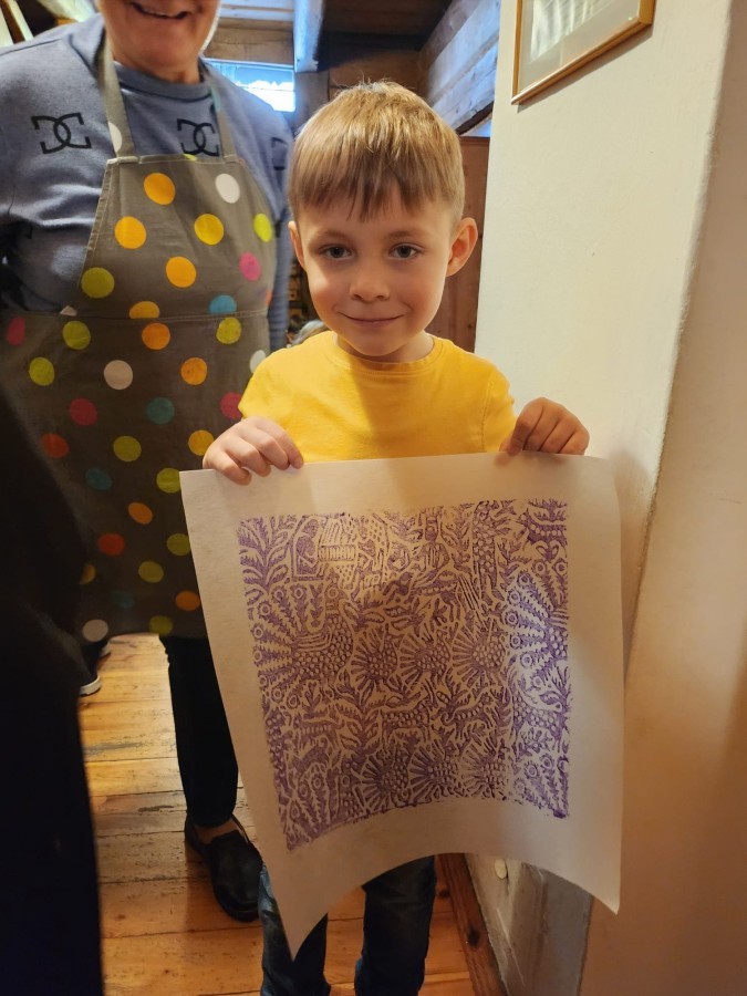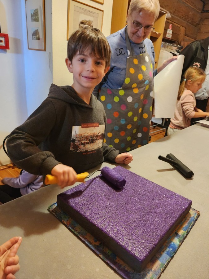 Największą atrakcją były warsztaty z drukowania tkanin, podczas których każdy mógł samodzielnie ozdobić kawałek materiału, tworząc niepowtarzalną pamiątkę — oczywiście zabraliśmy je ze sobą do domu! 😊