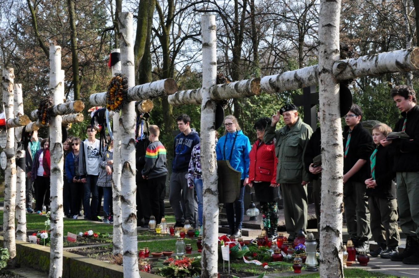 Kapitan Dąmbrowski z młodzieżą przy grobach żołnierzy AK w Warszawie
