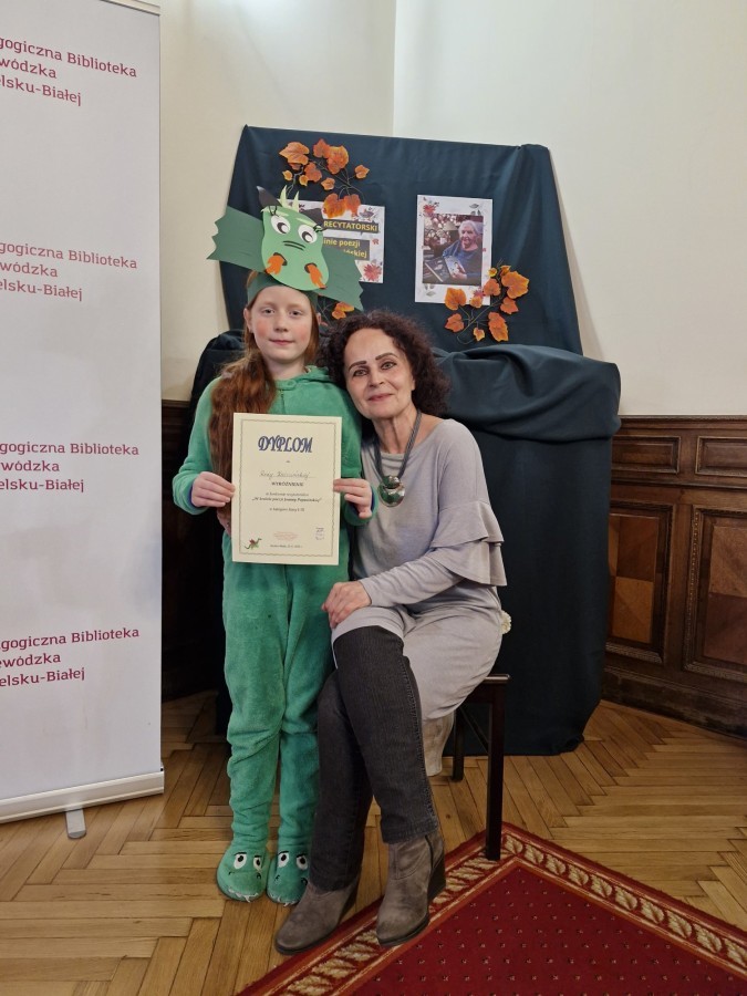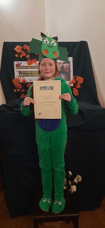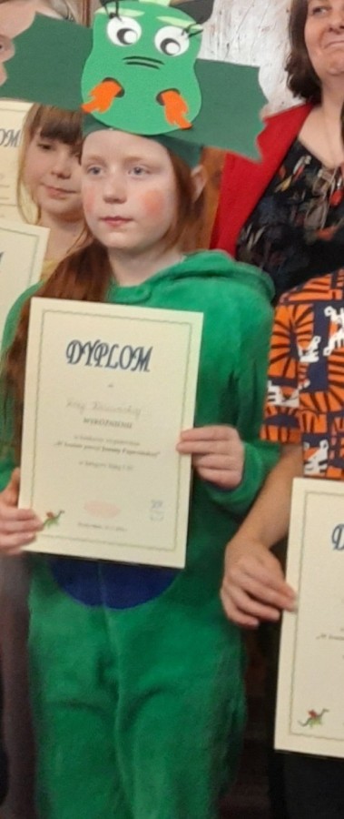W XIII edycji Międzyszkolnego Konkursu Recytatorskiego organizowanego przez Wojewódzką Bibliotekę Pedagogiczną w Bielsku-Białej dla szkół podstawowych z województwa śląskiego, uczennica kl.3d, Róża Kalicińska zdobyła wyróżnienie, za zaskakującą i ciekawą interpretację wiersza J. Papuzińskiej, „Kołysanka smoków”.