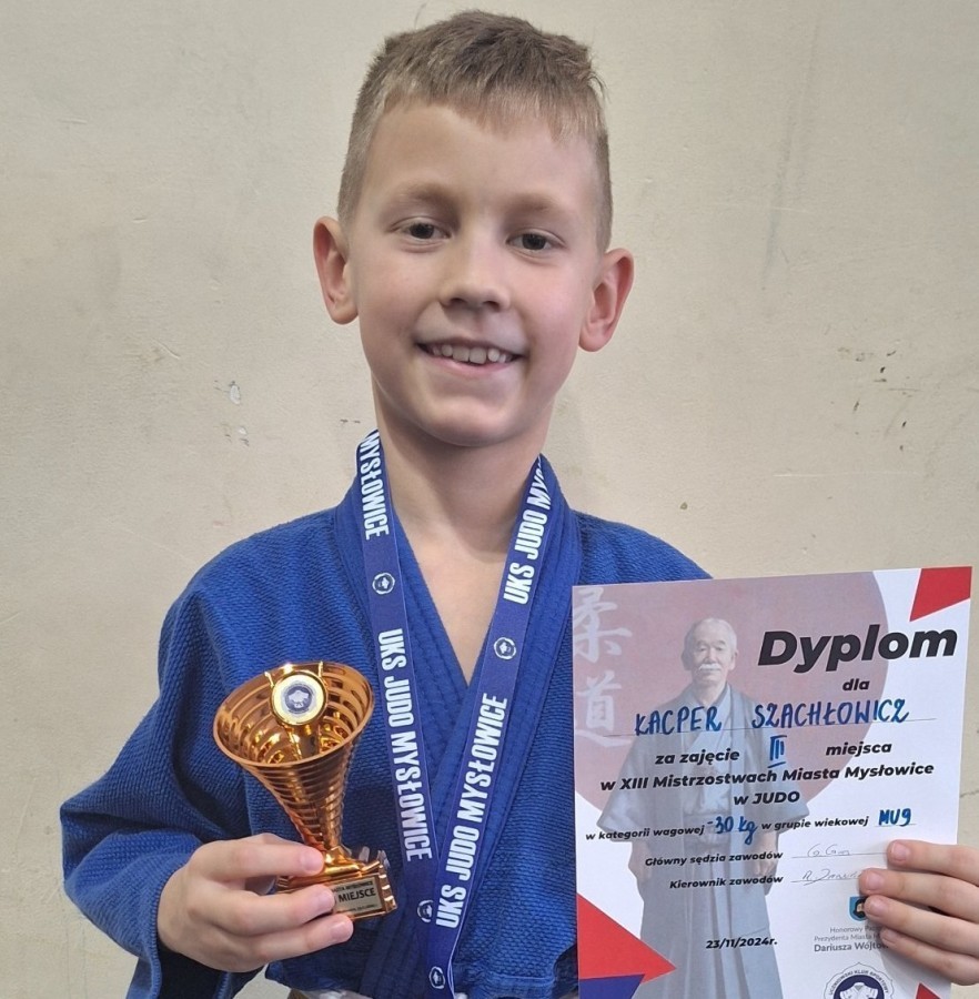 Jednym z ojców tego zespołowego sukcesu był nasz uczeń z klasy sportowej 2A Kacper Szachłowicz. Kacper walcząc w kategorii MU9 / 30 kg zajął trzecie miejsce!