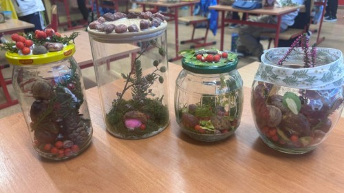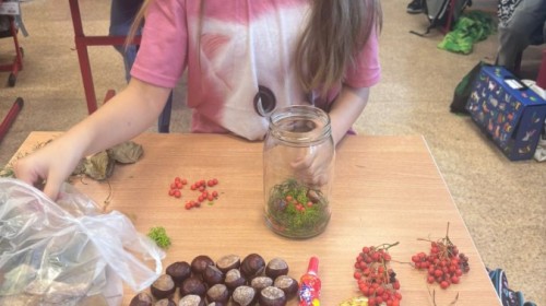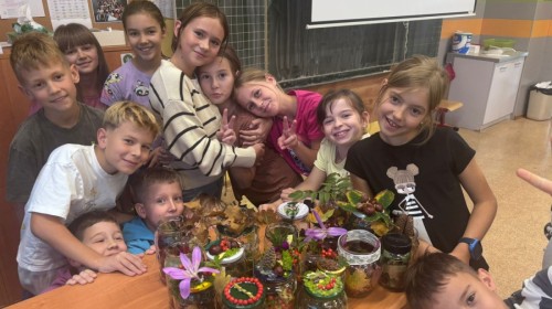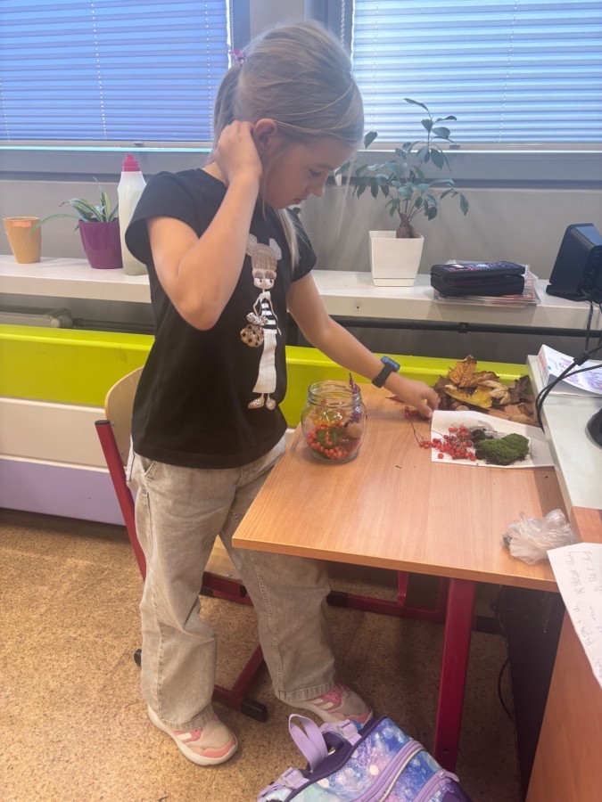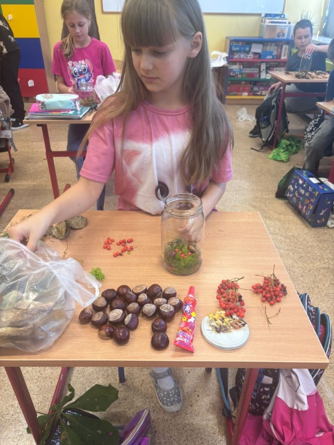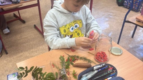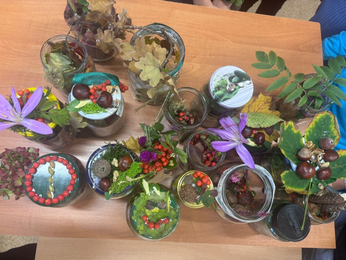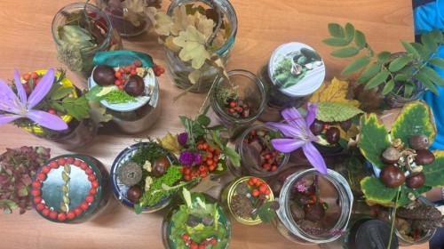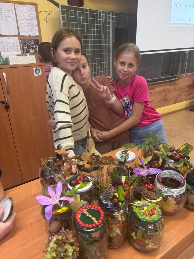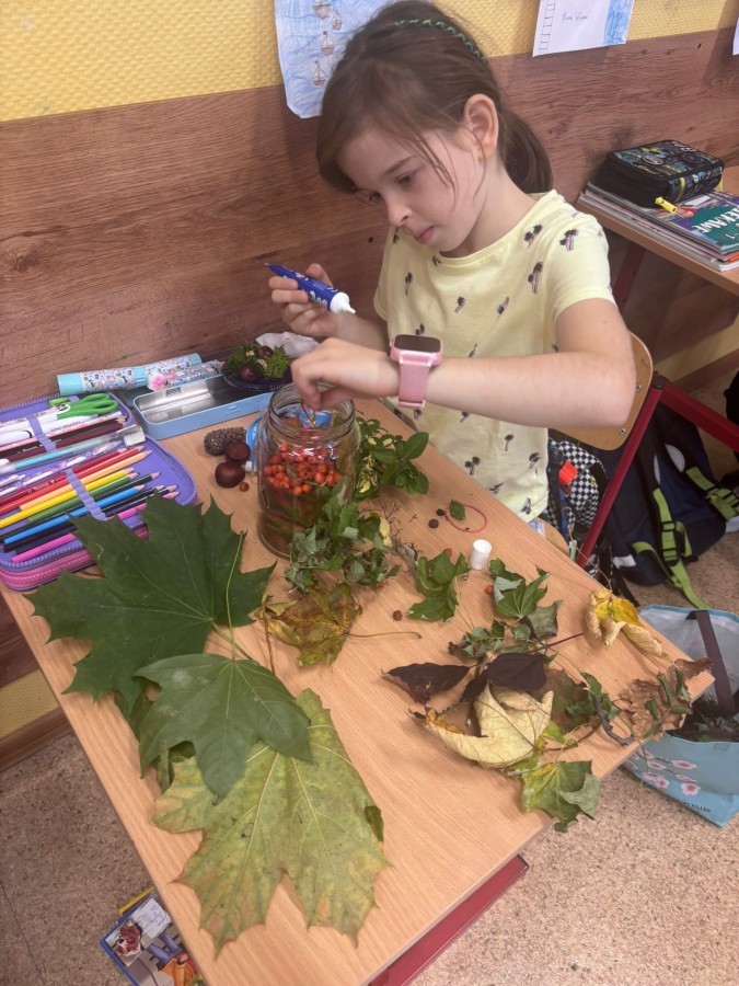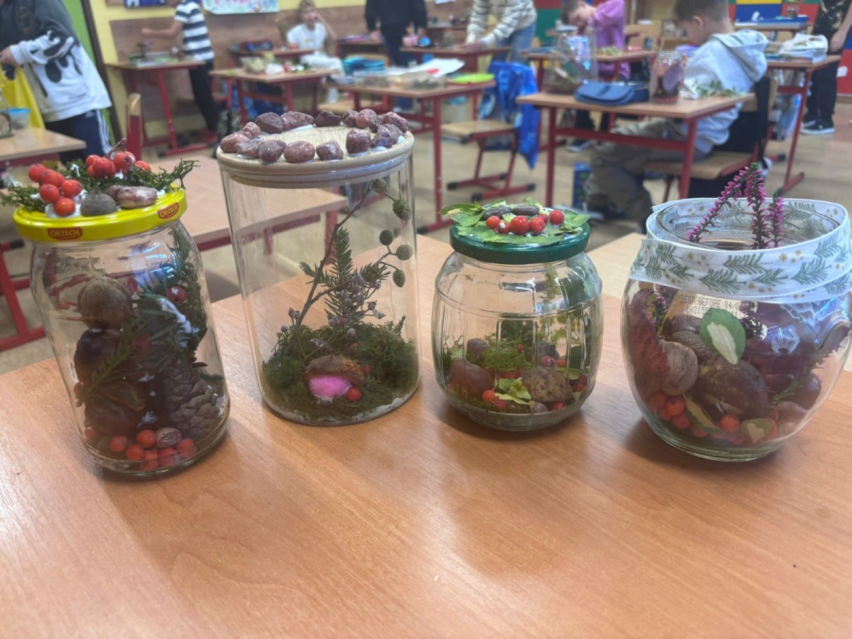 Uczniowie klasy 3a wspólnie z wychowawcą Magdaleną Sitkiewicz stworzyli wyjątkowe, naturalne kompozycje jesienne w słoikach.