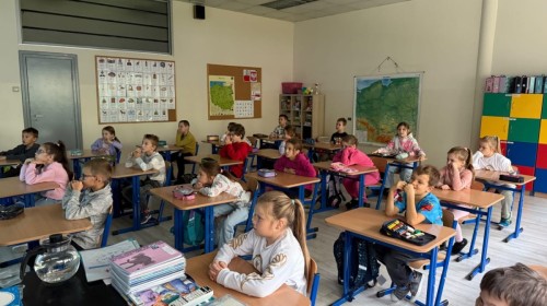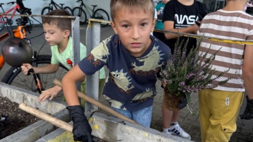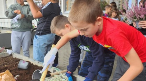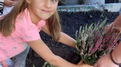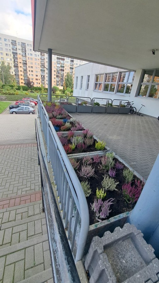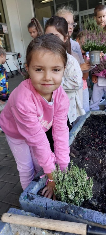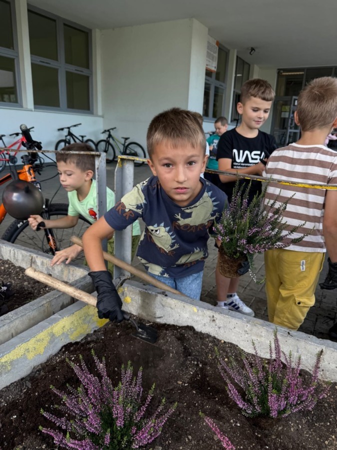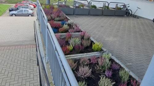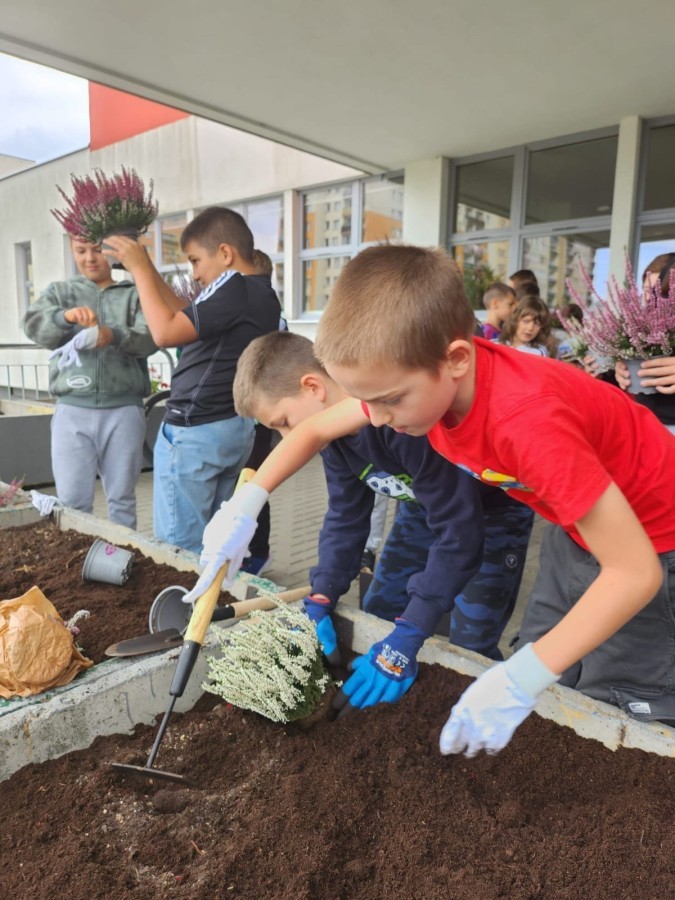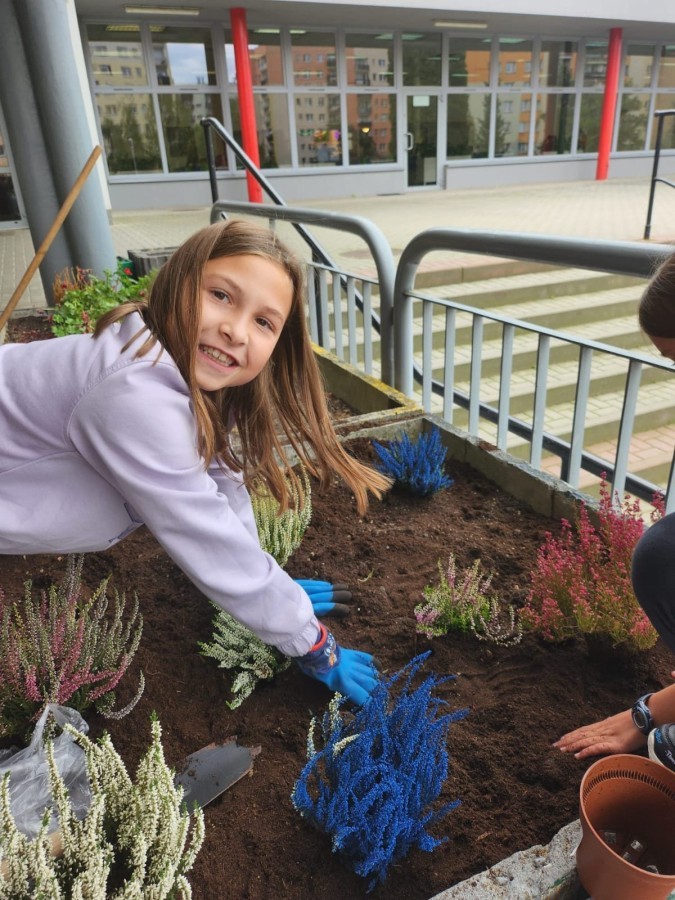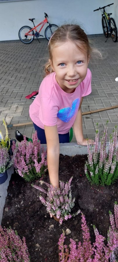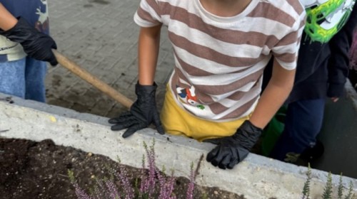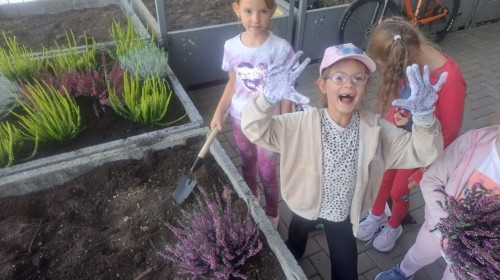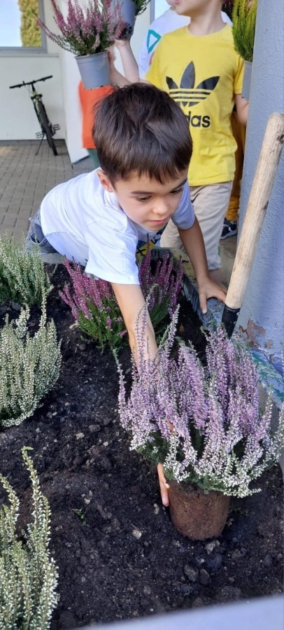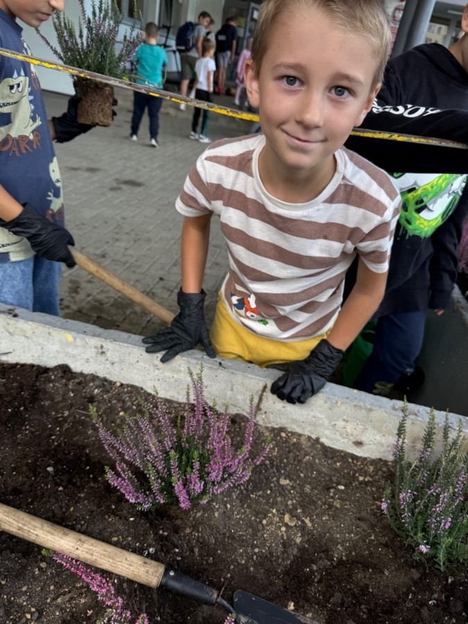 W październiku uczniowie klas 1a, 1b, 1c, 2c oraz – z ogromnym entuzjazmem – także klasy 4d podjęli wspólną inicjatywę i założyli przed szkołą piękny ogród wrzosów w ozdobnych donicach. Dzięki ich zaangażowaniu przestrzeń przed budynkiem zyskała nowy, barwny wygląd, a cała społeczność szkolna może cieszyć się wyjątkową, jesienną atmosferą.