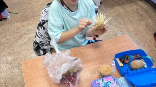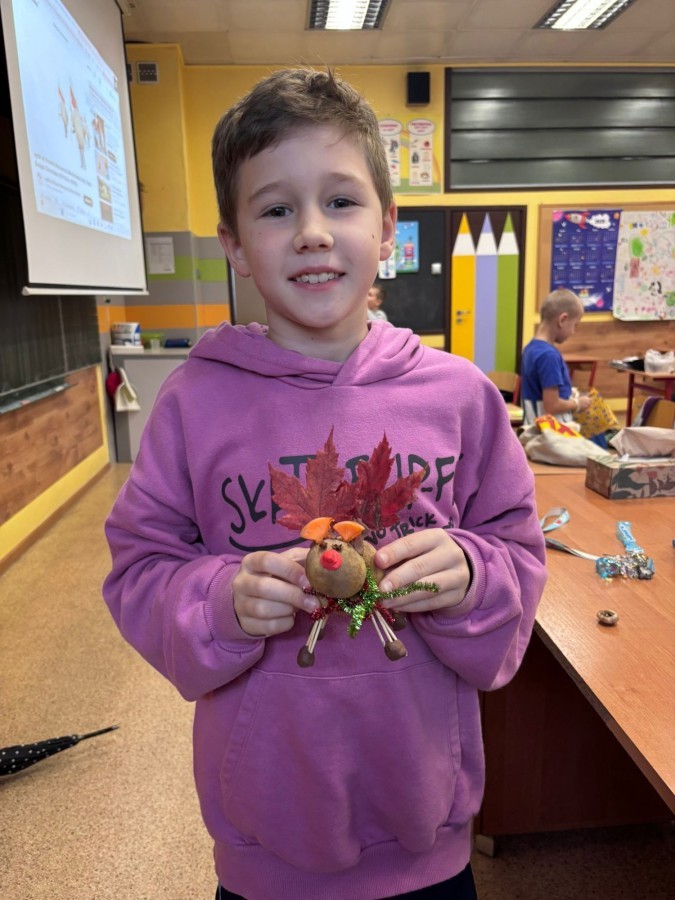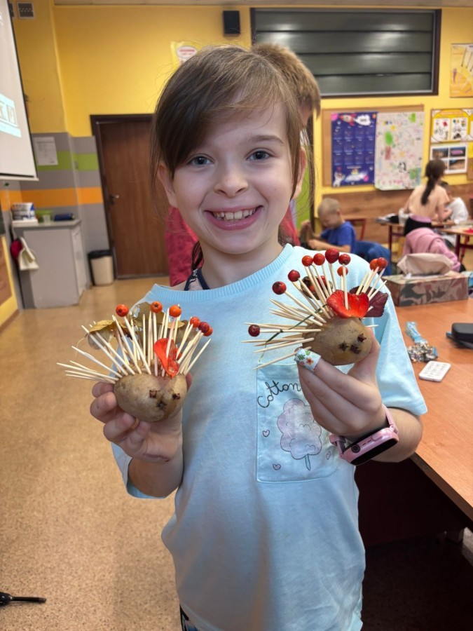 Uczniowie klasy 3 stworzyli wyjątkowe ekoludki, wykorzystując naturalne materiały takie jak ziemniaki, jarzębina, kasztany i patyczki. Podczas twórczej zabawy dzieci wykazały się ogromną pomysłowością i zaangażowaniem, tworząc kolorowe, ekologiczne postacie.