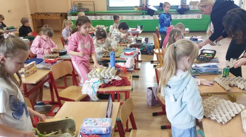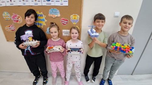 - a na koniec wykazali się ogromną kreatywnością, tworząc ekologiczne zabawki z recyklingu – z pudełek po jajkach!