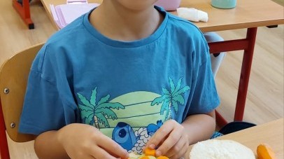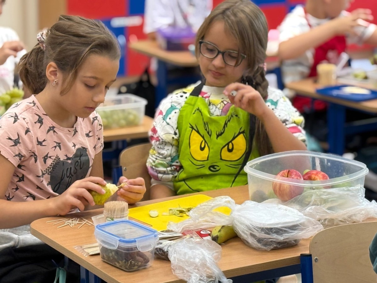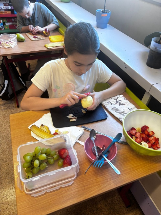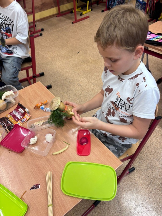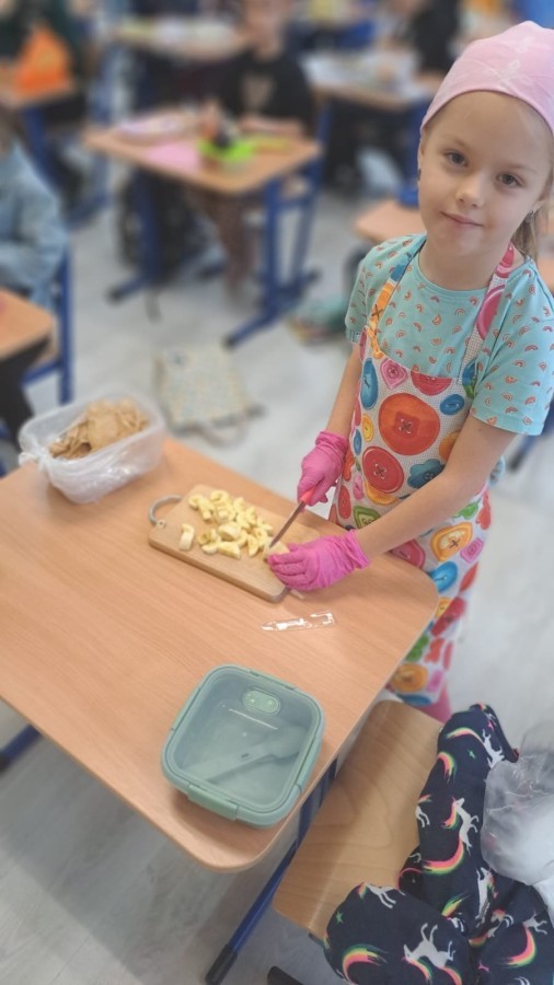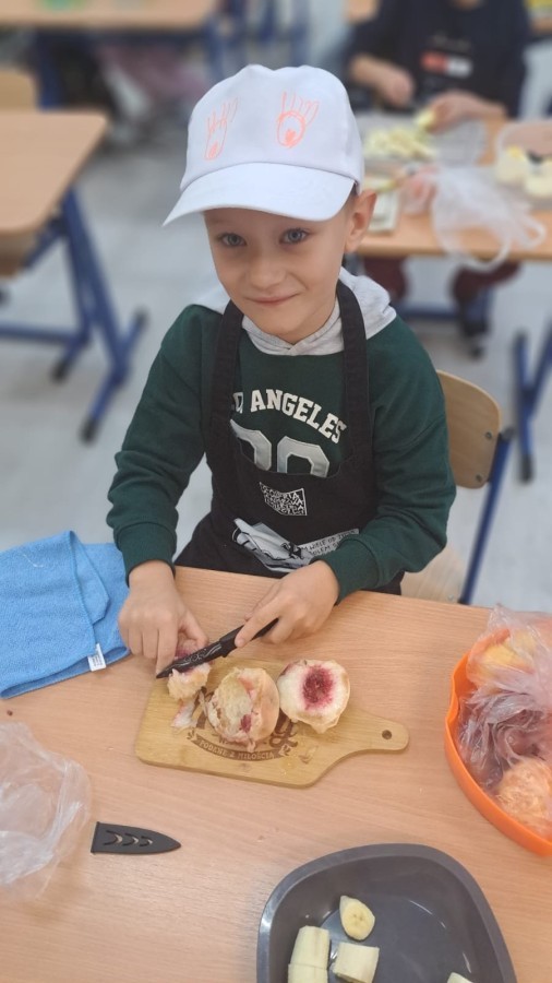 W ramach udziału w konkursie „Szanuj Energię, Chroń Klimat” uczniowie klas 1a, 1c, 2c zrealizowali ekologiczne działanie kulinarne, którego głównym założeniem było pokazanie, że troska o planetę zaczyna się od codziennych, małych wyborów – także tych, które podejmujemy w kuchni. Dzieci wspólnie przygotowały zdrowe, kolorowe i pełne witamin przekąski: kanapeczki warzywne, owocowe szaszłyki, sałatki owocowe i warzywne. Wykorzystaliśmy świeże owoce i warzywa, dbając o to, aby nic się nie zmarnowało. To była nie tylko pyszna, ale i bardzo wartościowa lekcja świadomego odżywiania oraz szacunku do jedzenia i środowiska. Uczniowie pracowali z ogromnym zaangażowaniem – kroili, układali, komponowali i przede wszystkim uczyli się, jak poprzez zdrowe nawyki można dbać o siebie i o Ziemię. Takie działania pokazują, że ekologia może być smaczna, kolorowa i radosna 💚