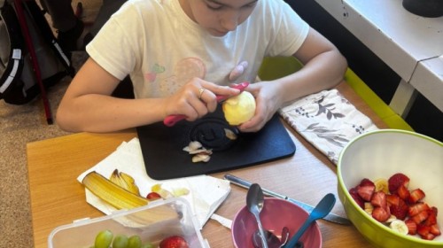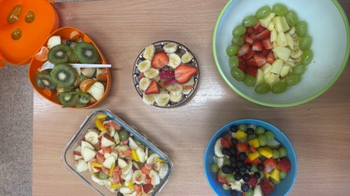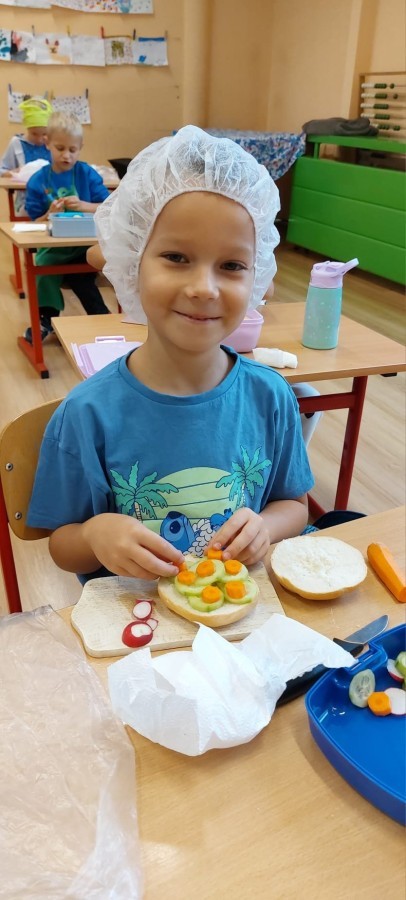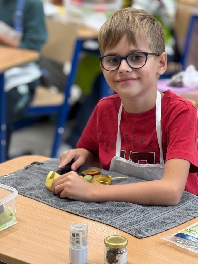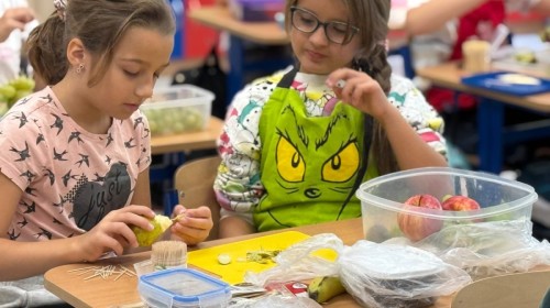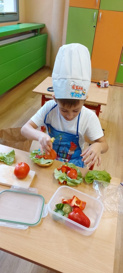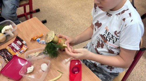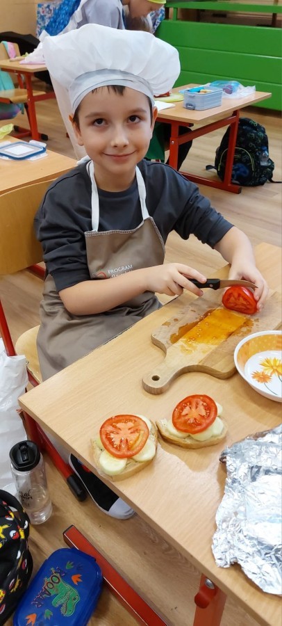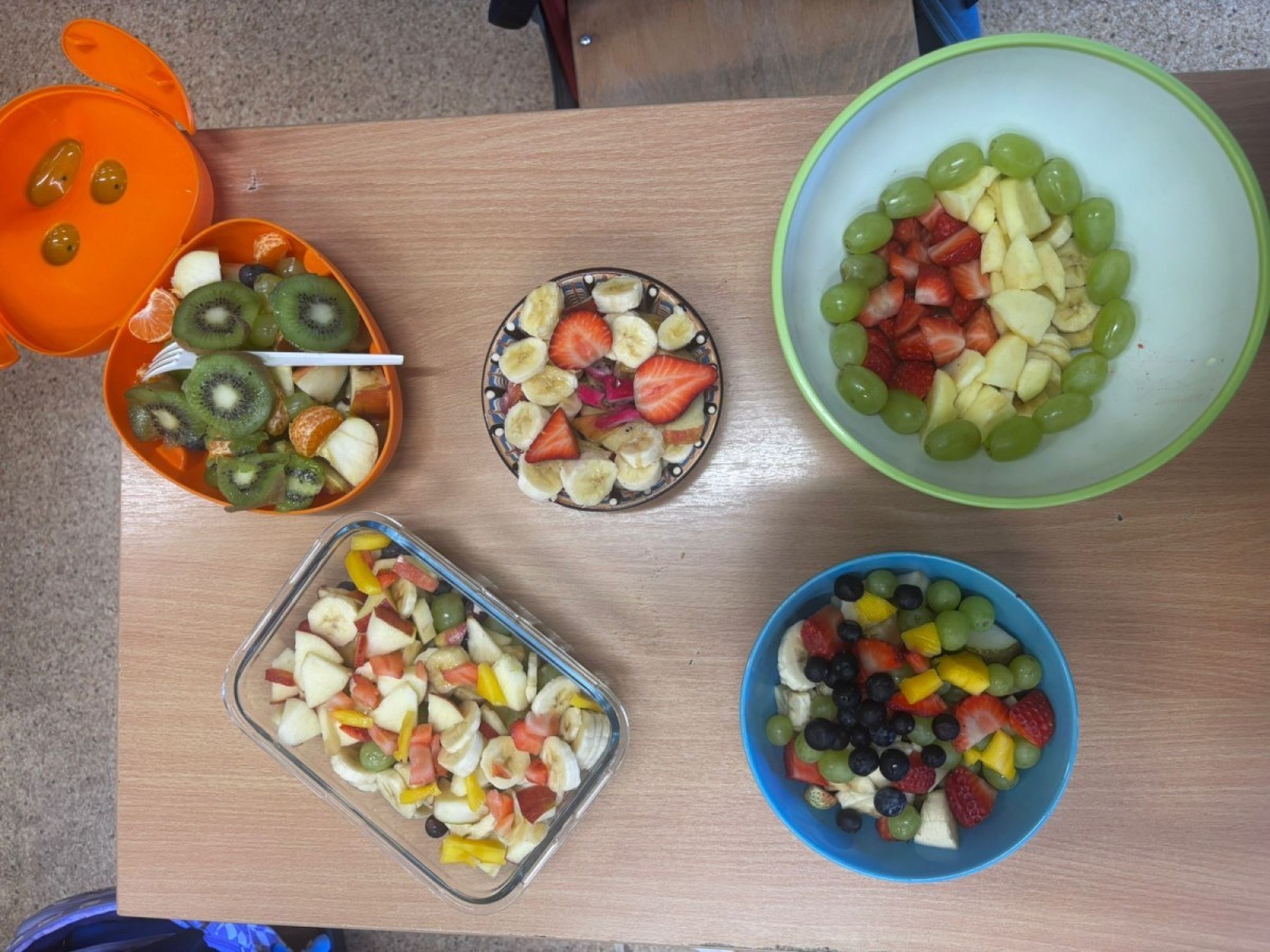 W ramach udziału w konkursie „Szanuj Energię, Chroń Klimat” uczniowie klas 1a, 1c, 2c zrealizowali ekologiczne działanie kulinarne, którego głównym założeniem było pokazanie, że troska o planetę zaczyna się od codziennych, małych wyborów – także tych, które podejmujemy w kuchni. Dzieci wspólnie przygotowały zdrowe, kolorowe i pełne witamin przekąski: kanapeczki warzywne, owocowe szaszłyki, sałatki owocowe i warzywne. Wykorzystaliśmy świeże owoce i warzywa, dbając o to, aby nic się nie zmarnowało. To była nie tylko pyszna, ale i bardzo wartościowa lekcja świadomego odżywiania oraz szacunku do jedzenia i środowiska. Uczniowie pracowali z ogromnym zaangażowaniem – kroili, układali, komponowali i przede wszystkim uczyli się, jak poprzez zdrowe nawyki można dbać o siebie i o Ziemię. Takie działania pokazują, że ekologia może być smaczna, kolorowa i radosna 💚