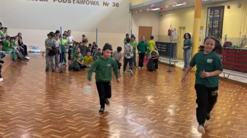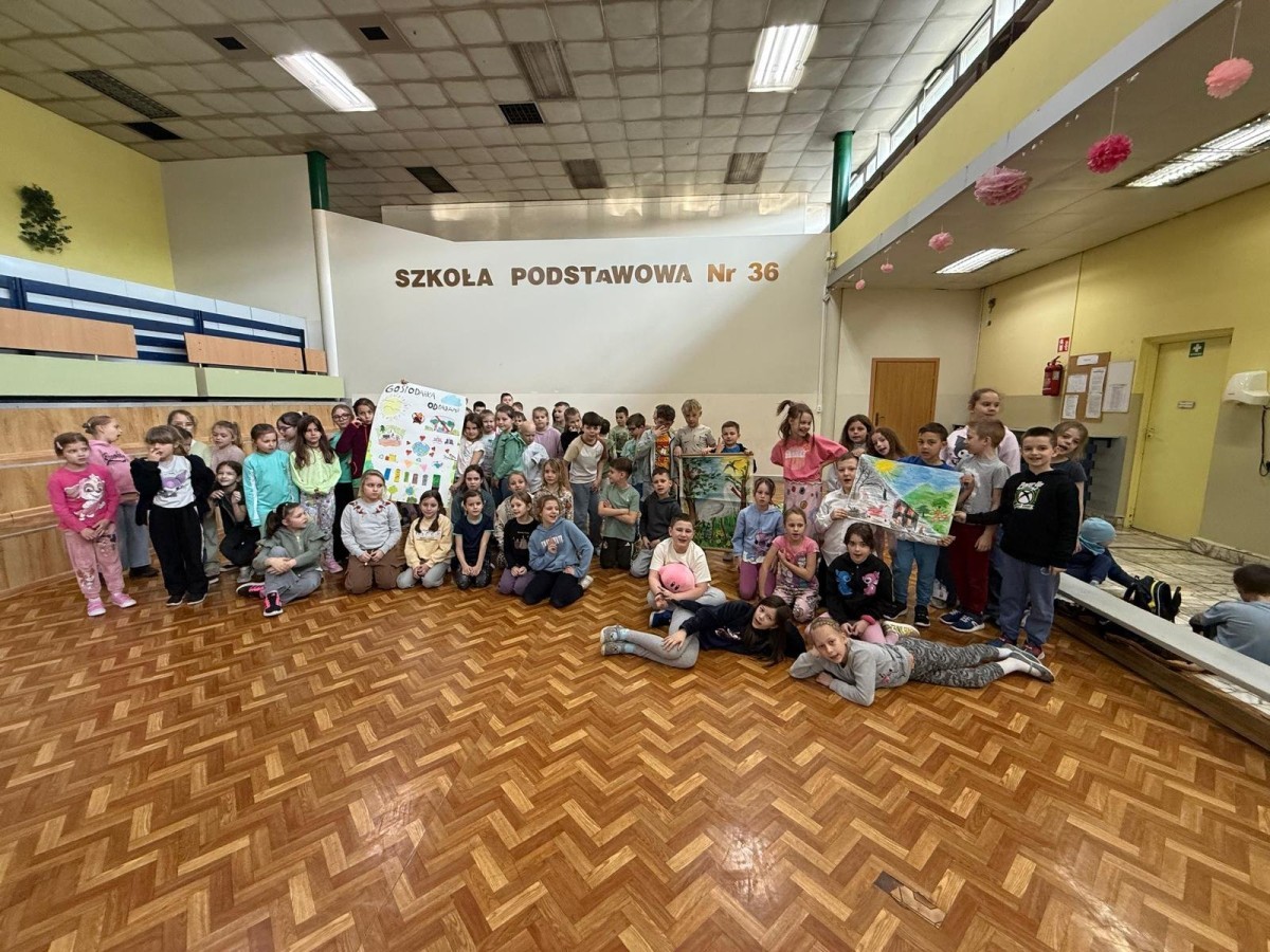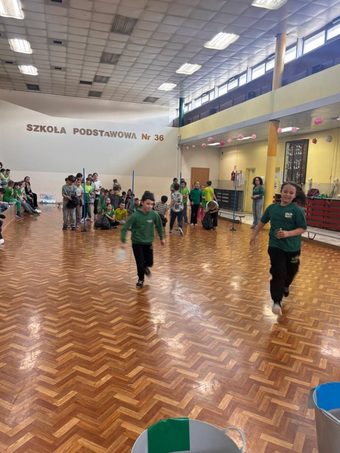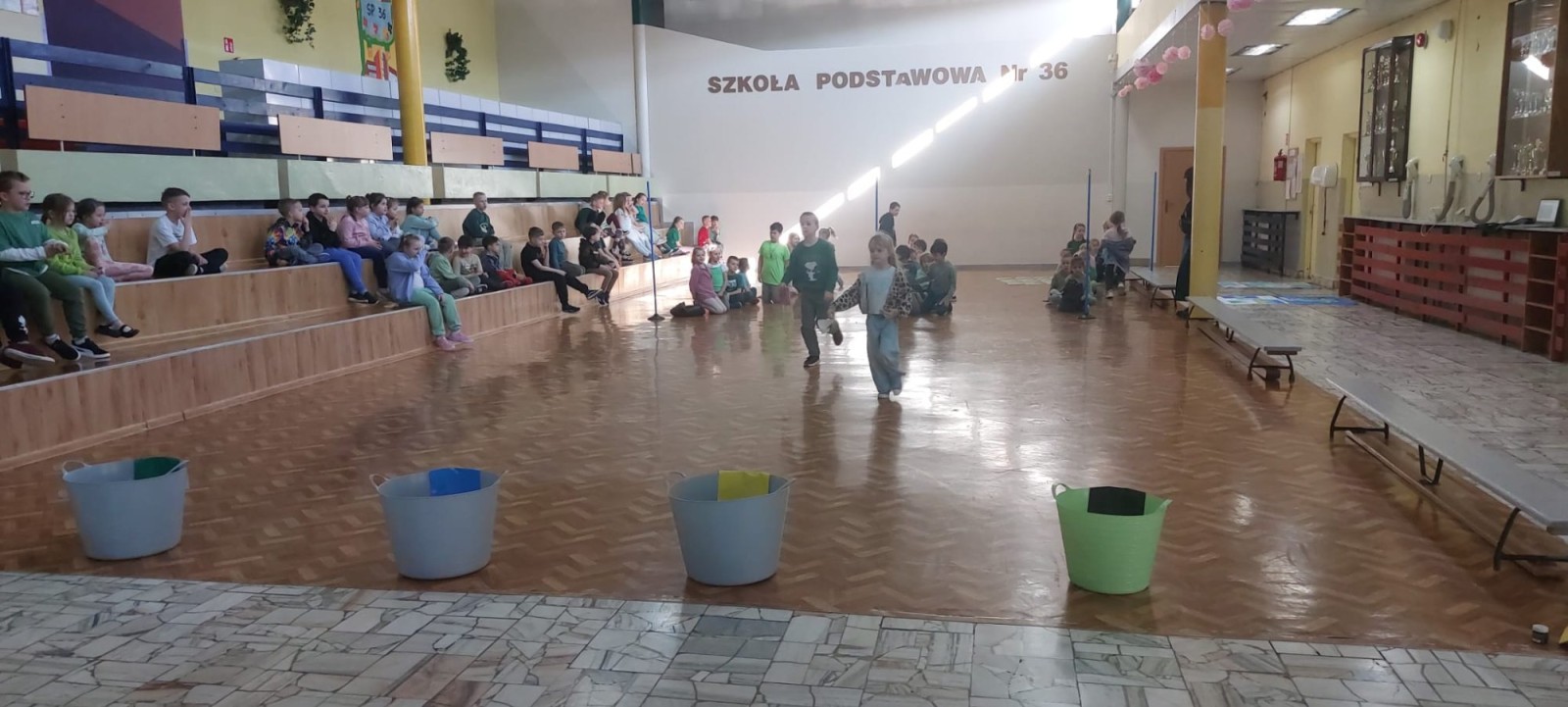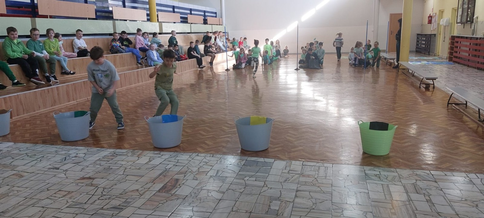 Kulminacją dnia było wspólne wydarzenie dla wszystkich klas 1–3. Na uczniów czekały liczne atrakcje: konkurencja sportowa z segregacji odpadów, eko- quiz na wzór „Familiady”, ekologiczne memory oraz karty pracy i krzyżówki związane z ochroną przyrody.