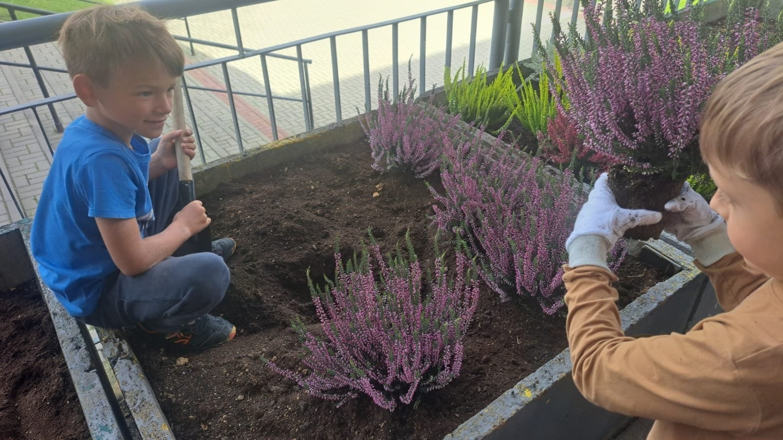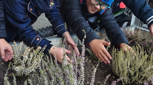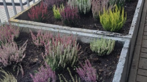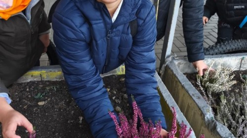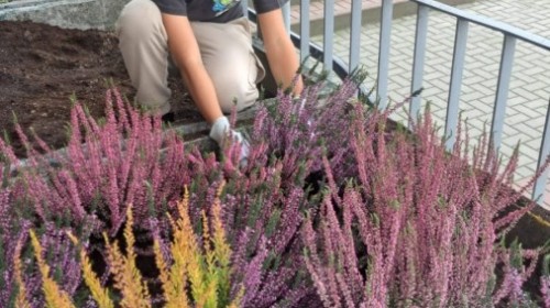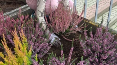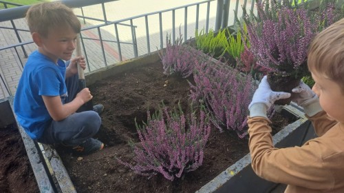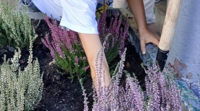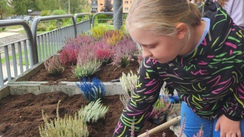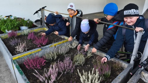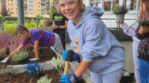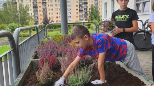 Wrzosowy ogród przed szkołą – wspólne działanie uczniów w ramach konkursu „Szanuj energię, chroń klimat”