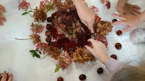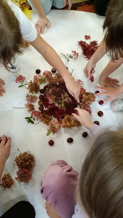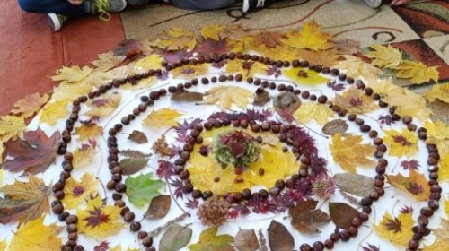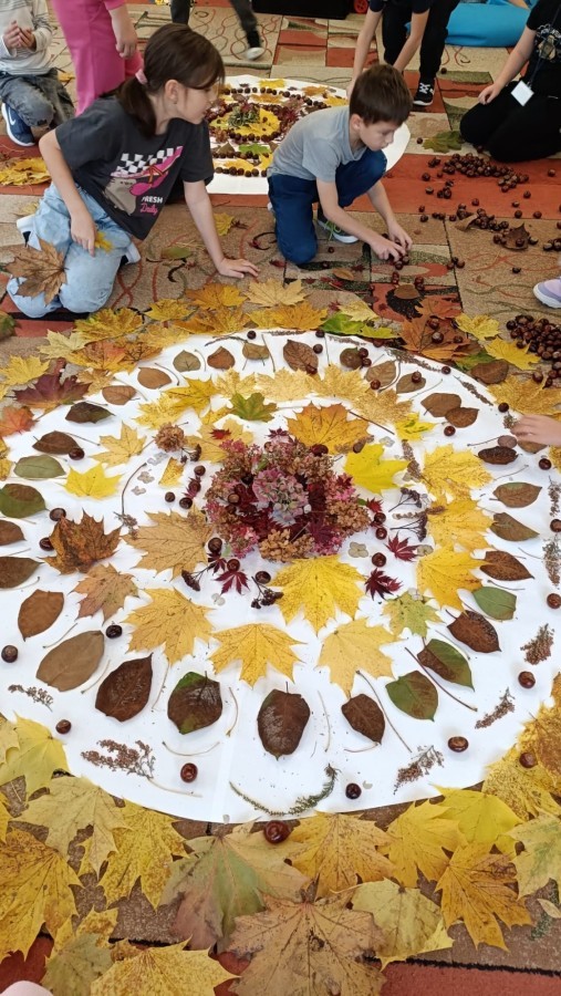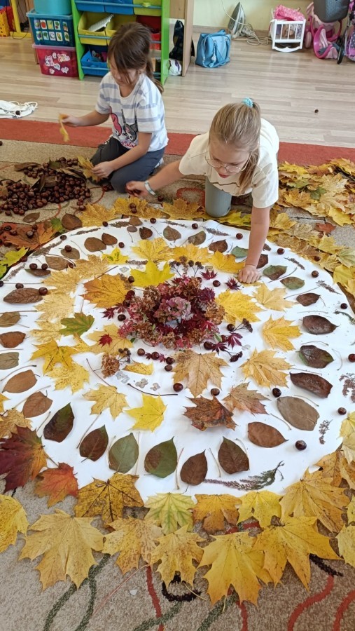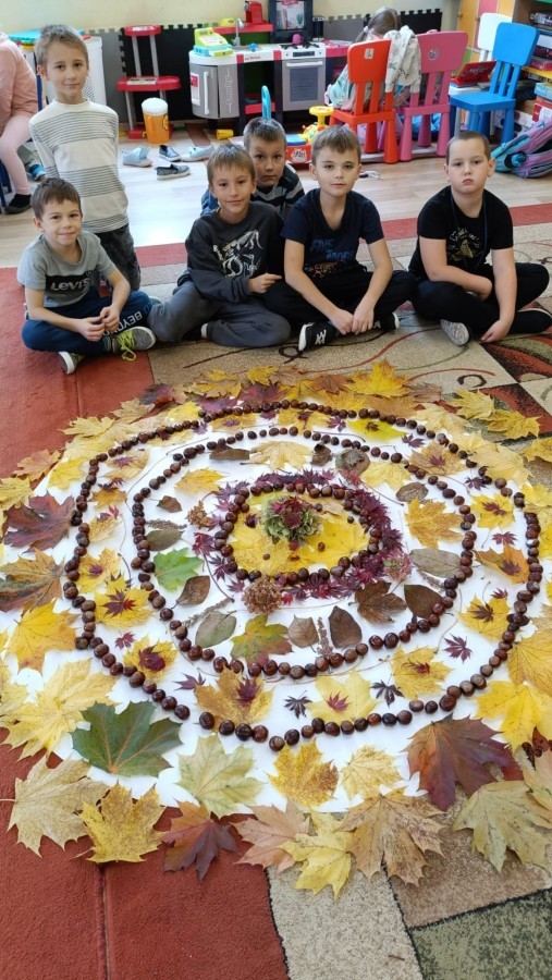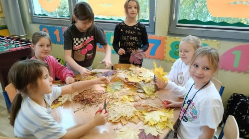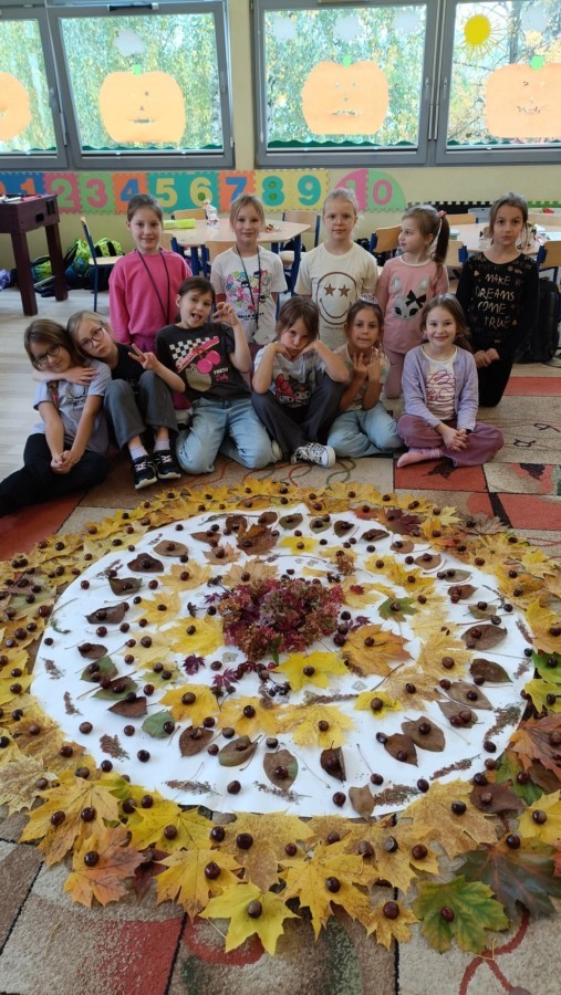 Świetlica szkolna również wspiera projekt edukacyjny ,,Szanuj energię, chroń klimat". Tworząc prace plastyczne i realizując działanie twórcze myślimy o ochronie środowiska, szanujemy przyrodę i postępujemy odpowiedzialnie. Do jesiennych prac plastycznych wykorzystujemy często zebrane na spacerach dary natury. Tworząc jesienne mandale z kwiatów, liści i kasztanów dzieci pracowały w grupach ucząc się współpracy oraz pogłębiały wiedzę przyrodniczą i ekologiczną.