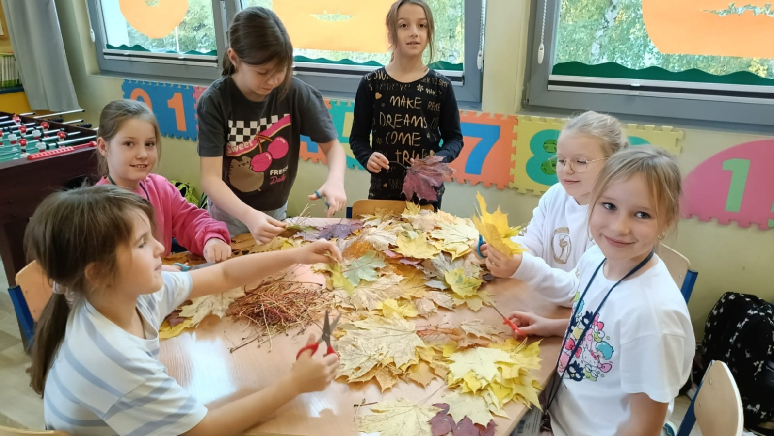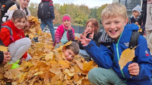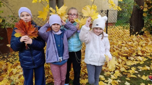 Kolorowe liście w parku i w ogrodzie to nie tylko oznaka nadchodzącej jesieni, ale także doskonały materiał do kreatywnych zabaw i twórczych działań. Podczas zajęć ekologicznych uczniowie dowiedzieli się, dlaczego opadające liście odgrywają tak ważną rolę w ekosystemie oraz jak powstaje kompost – naturalny nawóz wspierający wzrost roślin. W ramach programu zrealizowaliśmy działanie ekologiczne oraz działanie twórcze, łącząc naukę o przyrodzie z rozwijaniem kreatywności i wrażliwości ekologicznej naszych uczniów.
