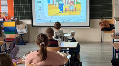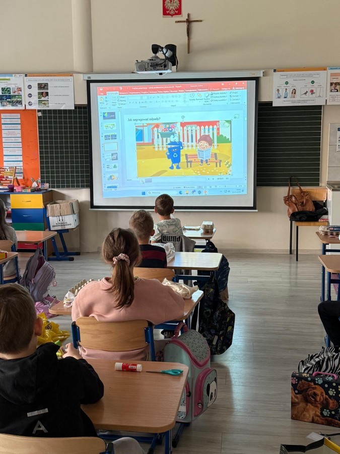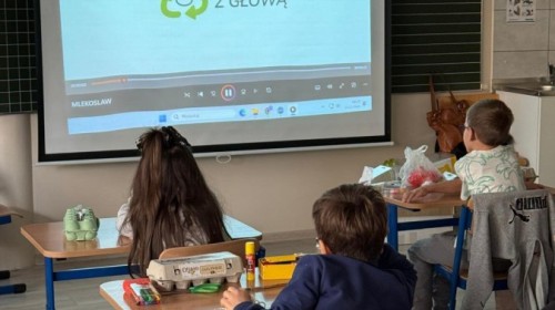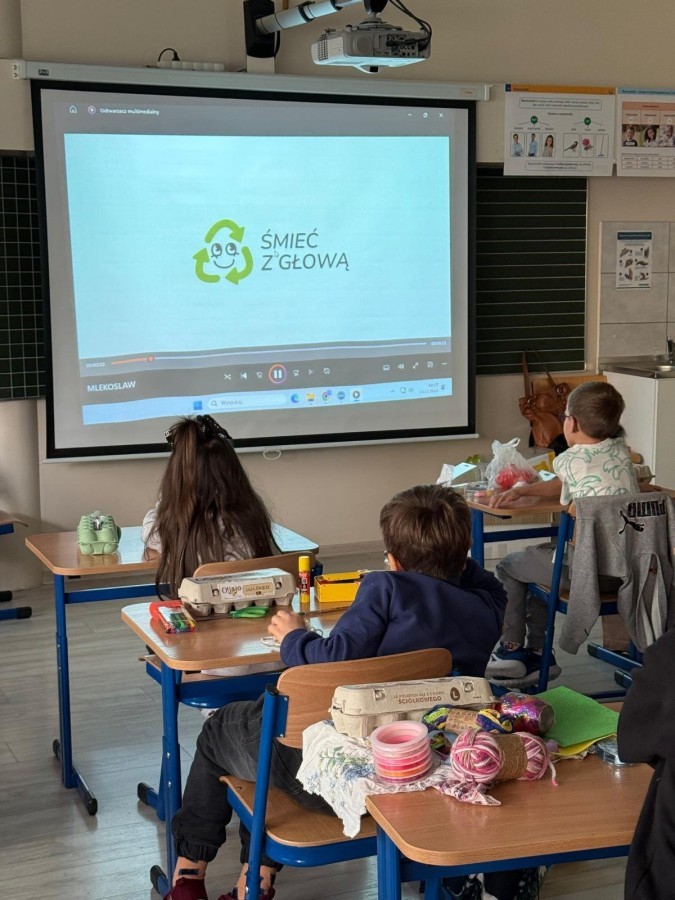 - obejrzeli film edukacyjny o drodze odpadów i ich ponownym wykorzystaniu,
