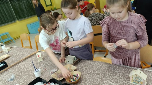 Warsztaty były nie tylko okazją do rozwijania zdolności manualnych, ale również doskonałą lekcją ponownego wykorzystania materiałów, odpowiedzialności za środowisko oraz świadomego gospodarowania zasobami.