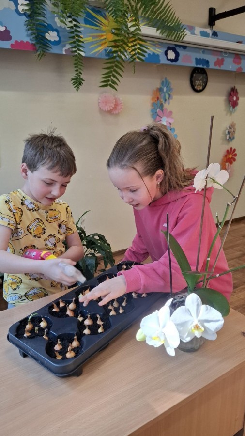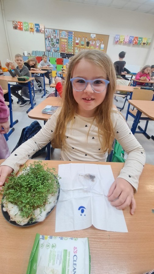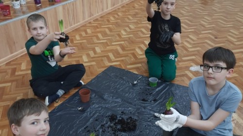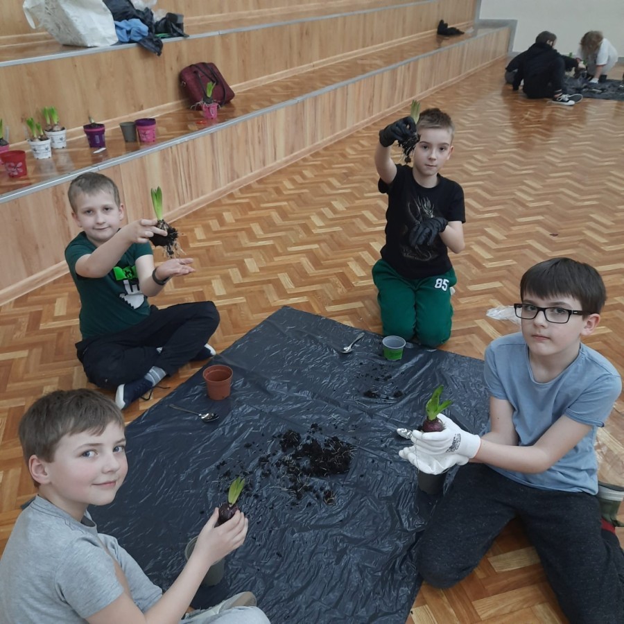Od rana w klasach odbywały się różnorodne działania ekologiczne – uczniowie przygotowywali zdrowe sałatki, sadzili hiacynty, cebulę, rzeżuchę i szczypiorek (w salach i na świetlicy), a także tworzyli plakaty ekologiczne.
