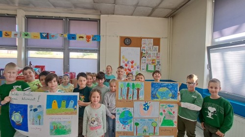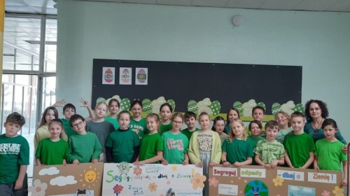 Uczniowie zaśpiewali ekologiczną piosenkę, włączając się w działania promujące postawy proekologiczne w radosny i twórczy sposób. Dzieci zadbały także o odpowiedni akcent wizualny – ubrały się na zielono, podkreślając symbolikę troski o środowisko.