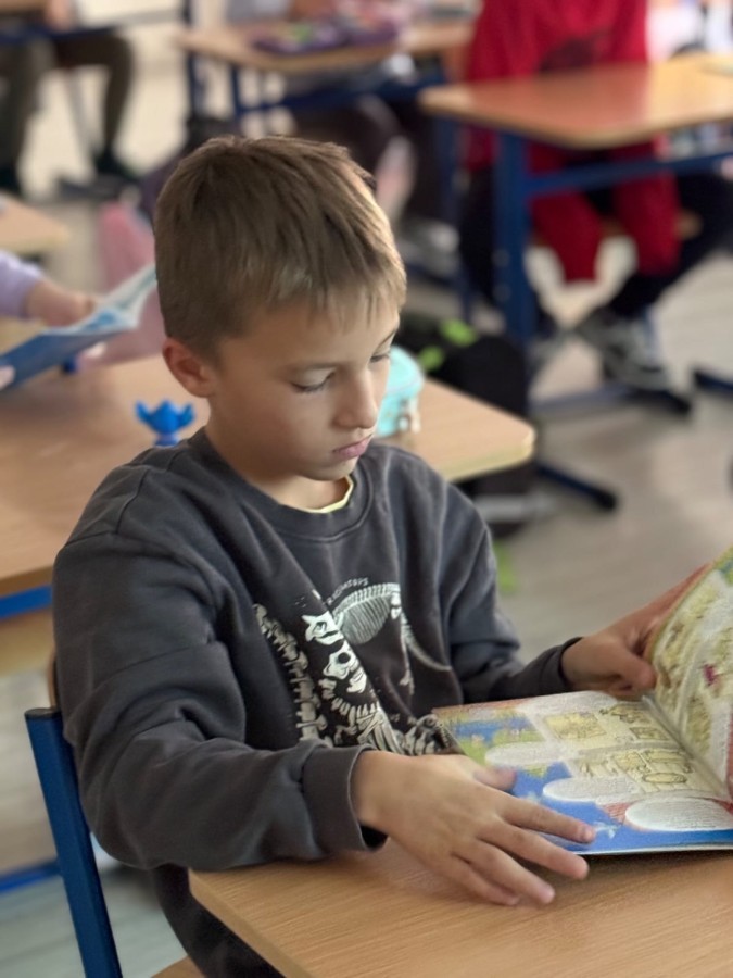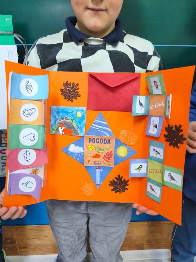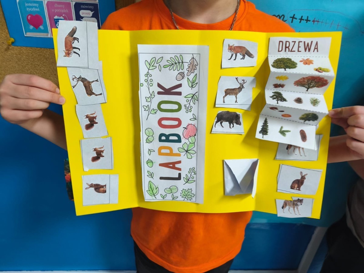 Uczniowie klasy 1b w ramach konkursu ,,Szanuj energie, chroń klimat' wykonali kolorowy lapbook o jesienii wykorzystując materiały z recyklingu. W środku znalazły się drzewa, zwierzęta i liście, wykonane różnymi technikami plastycznymi, takimi jak wycinanie, wyklejanie, rysowanie i malowanie. Podczas pracy dzieci uczyły się, jak dbać o przyrodę, chronić klimat, a jednocześnie rozwijały swoją kreatywność i wrażliwość ekologiczną. Lapbook stał się piękną, wspólną pracą, pokazującą, że z pozornie niepotrzebnych materiałów można stworzyć coś wyjątkowego. Działanie twórcze zrealizowane.